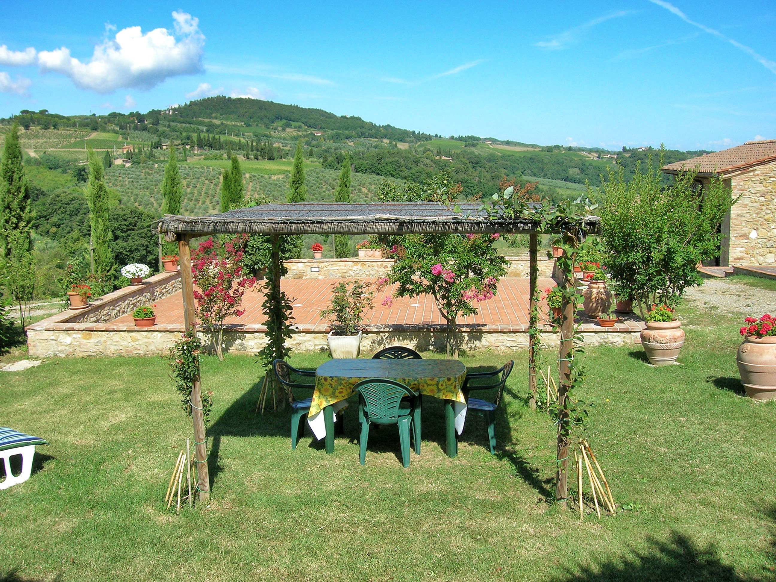 La Casa dei Girasoli is an ancient stone farmhouse dating back to the eighteenth century and was built on a hilltop in a panoramic position overlooking the San Gimignano countryside. The facility has a private swimming pool and offers accommodation in typical Tuscan-style furnished apartments.