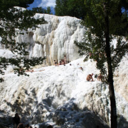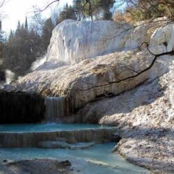 Bagni San Filippo is a small spa town located between the Crete of the Val d’Orcia and the woods of Mount Amiata and is well-known for its white limestone formations, including La Balena Bianca, the most evocative waterfall in the whole area.