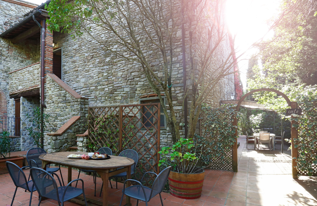 Borgo Casa al Vento is located in the Tuscan countryside, about 5 km from Gaiole in Chianti. It is an agritourism hotel renovated in Tuscan style. The property has two outdoor swimming pools, a wellness centre and a wine cellar.