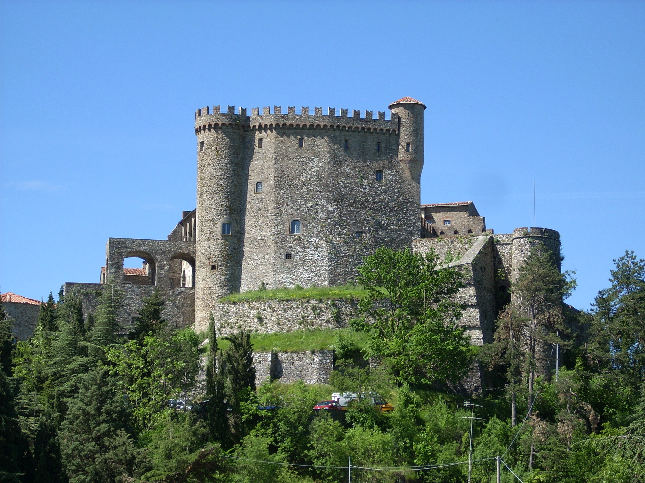 The Castle, which dates back to the second half of 12th century, stands between the Apuan Alps and the coast of the Tyrrhenian Sea. The building has a quadrangular layout with four round towers, a semi-circular bastion, two internal courtyards, arcades and terraces. Still today, the Castle belongs to the Malaspina family and hosts a museum, a cultural centre dedicated to contemporary arts and a residence for artists.