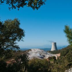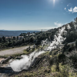 The Lardarello Geothermal Power Station is located on the metalliferous hills of Pisa, in the middle of the Valle del diavolo (Devil’s Valley). Borax fumaroles, with their typical columns of white vapour, are present here. It is the world’s first experience of exploitation of geothermal energy for the production of electricity.