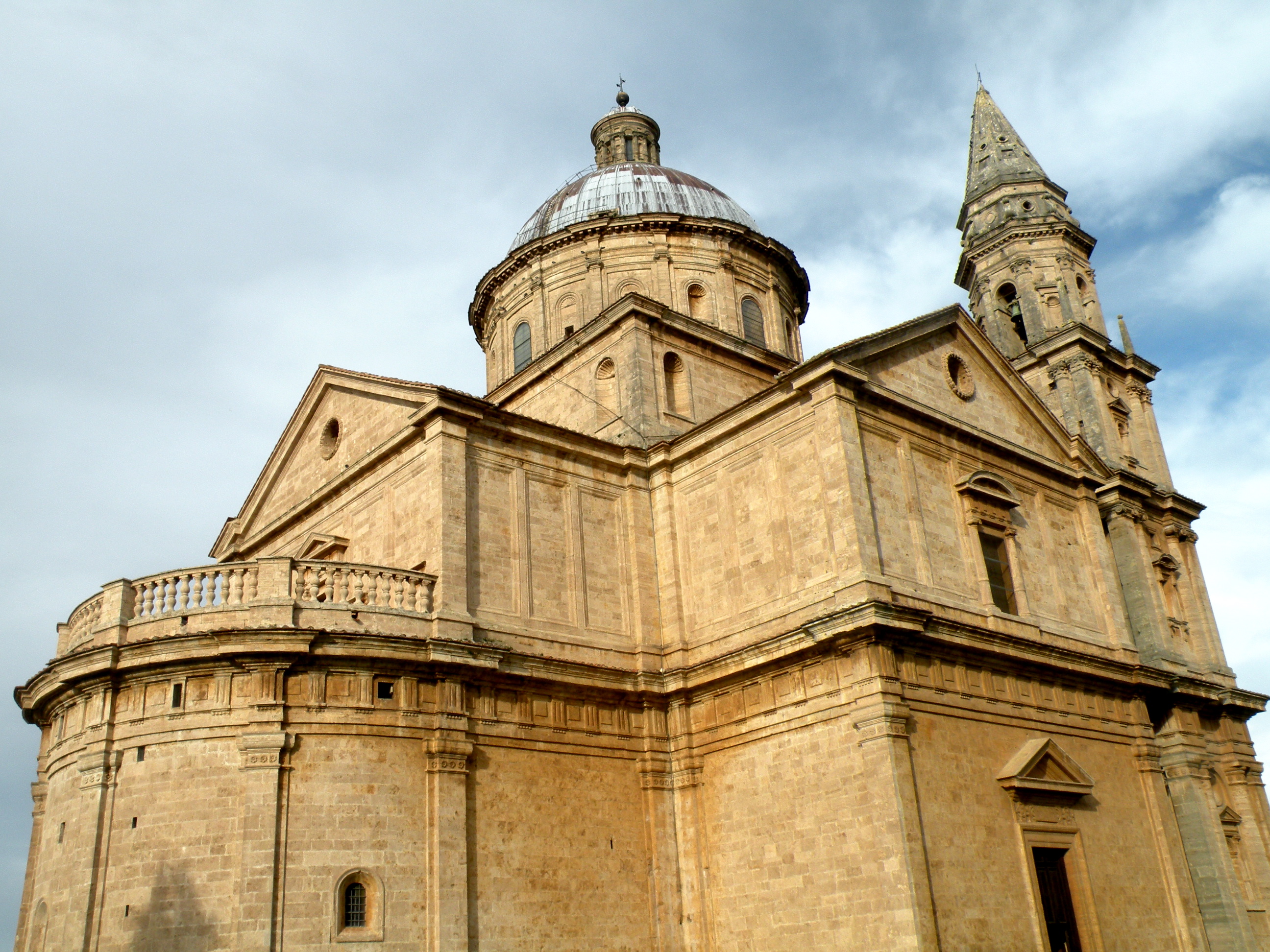 The Temple is one of the masterpieces of Italian Renaissance architecture, built in the 16th century and designed by Antonio da Sangallo the Elder. The church has a Greek cross layout with a central dome and a semi-circular apse. The backdrop consists of a large marble reredos by Giannozzo and Lisandro di Pietro Albertini. In the centre of the reredos, there is a fresco attributed to the Master of Badia a Isola depicting the Madonna with Child and Saint Francis.