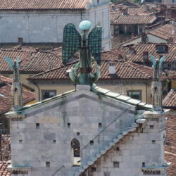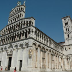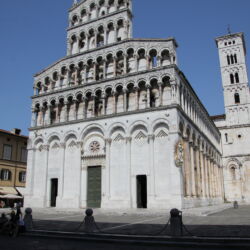 The Church of San Michele in Foro is located in the piazza of the same name in the historic centre of Lucca. The Church, which was strongly influenced by the Romanesque style of Pisa, has a tall false front rich in sculptures and embellishments. Inside the building are three naves with a transept and semi-circular apse.