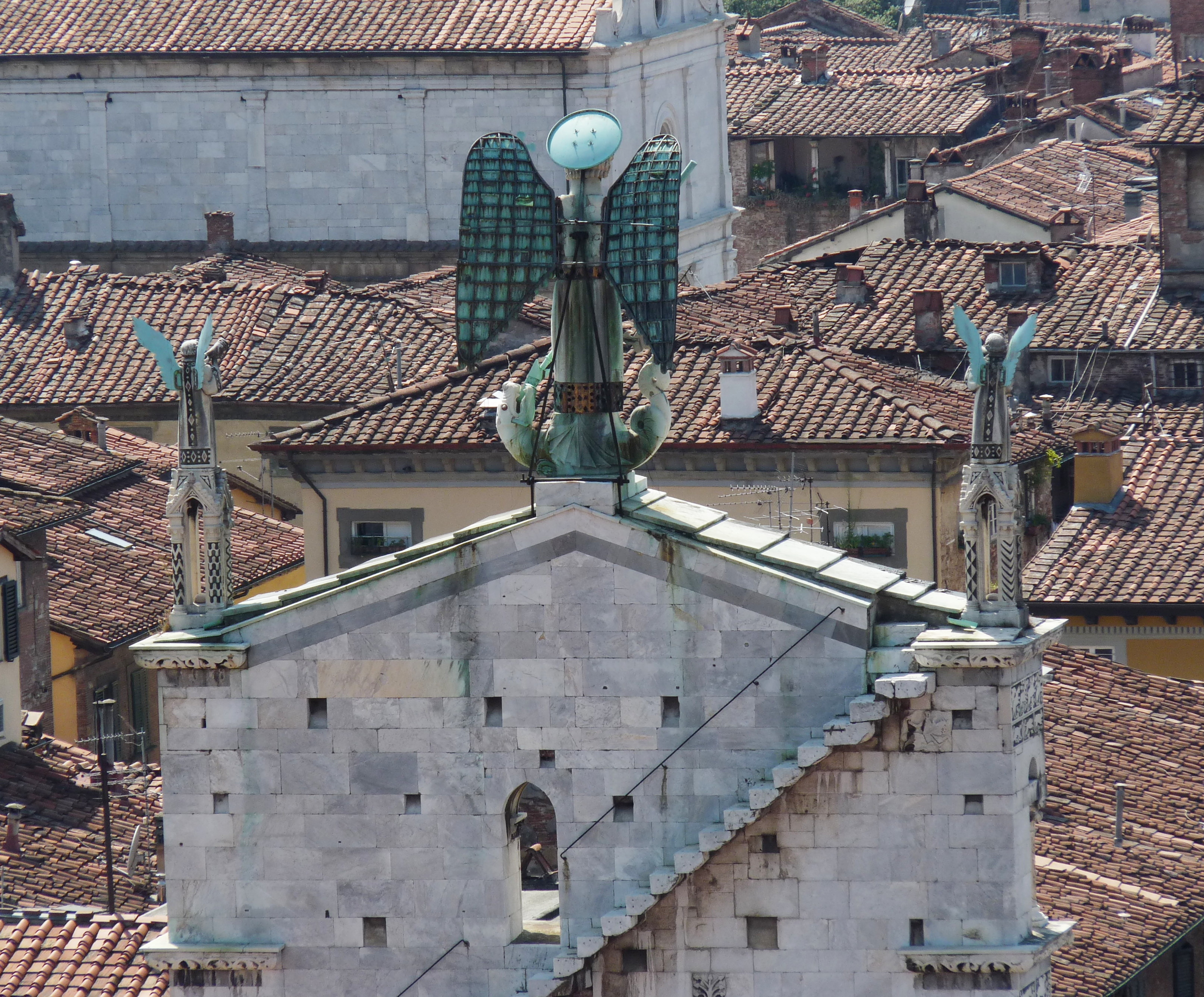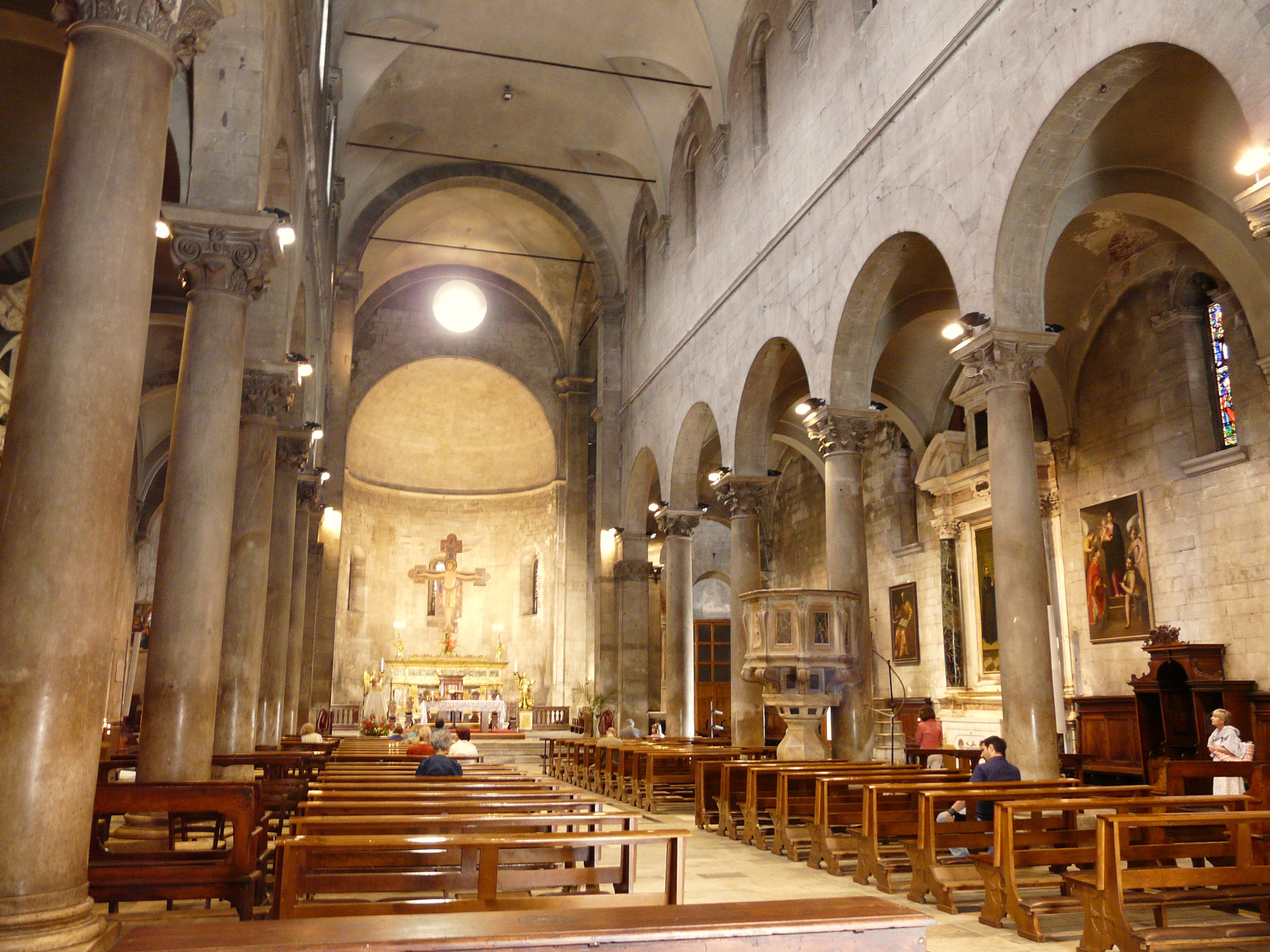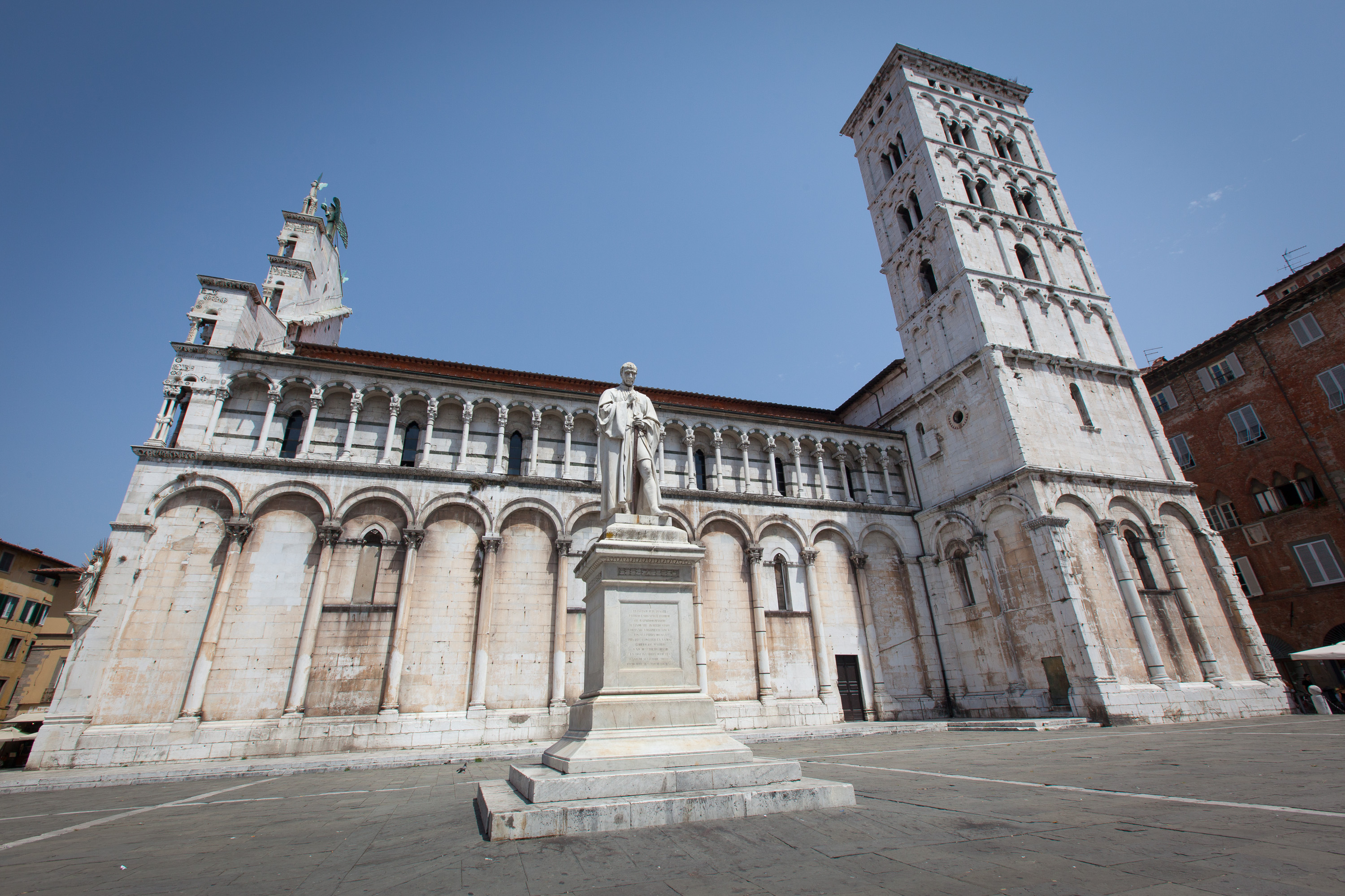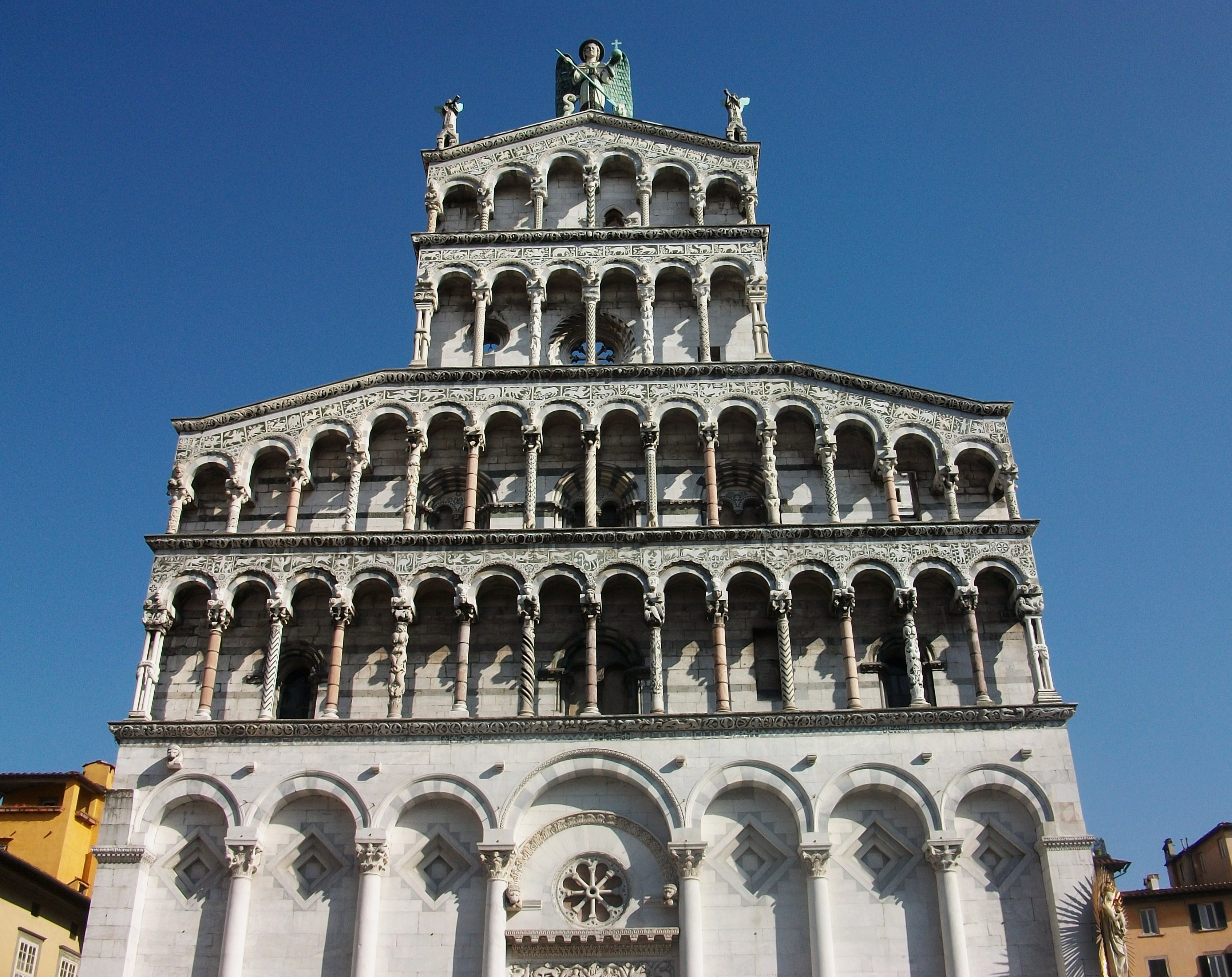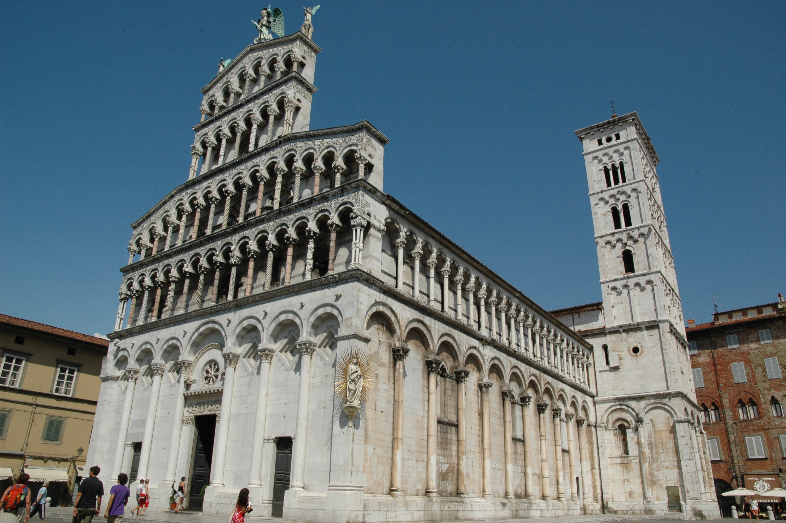 The Church of San Michele in Foro is located in the piazza of the same name in the historic centre of Lucca. The Church, which was strongly influenced by the Romanesque style of Pisa, has a tall false front rich in sculptures and embellishments. Inside the building are three naves with a transept and semi-circular apse.