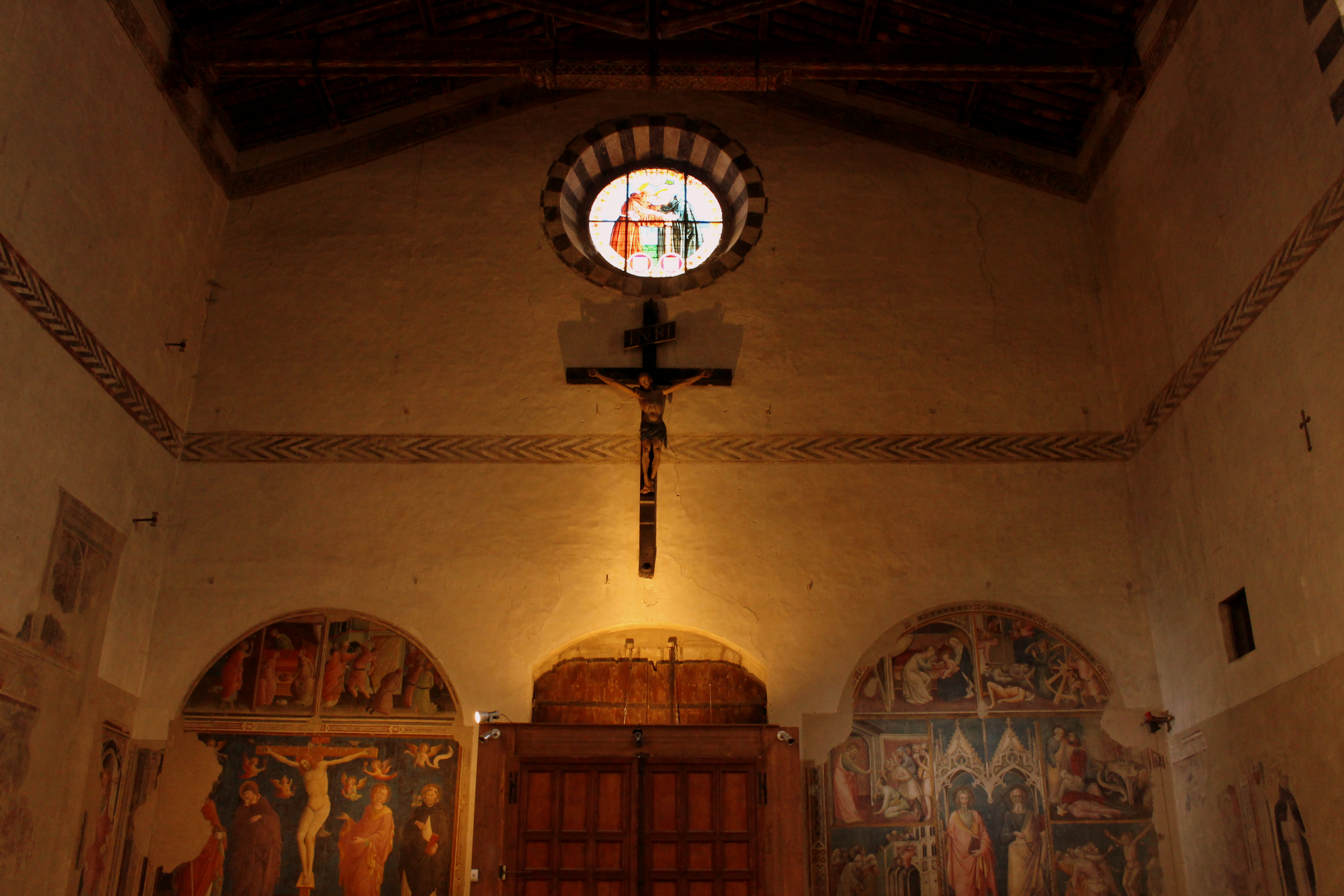 The Church of San Domenico is one of the most renowned religious buildings in Arezzo due to the wooden Crucifix painted by Cimabue inside it. Its construction began in 1275 and it has an unfinished, asymmetric, masonry façade with a belfry. Inside the church, there is a single nave with a trussed roof, lit up by numerous windows and decorated with 14th century frescoes.