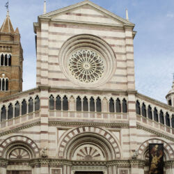 The Duomo of Grosseto, also known as the Cathedral of St. Lawrence, dates to the end of the 13th century. The present facade, in Romanesque style, is characterised by its double white-red colouring and Gothic shapes.