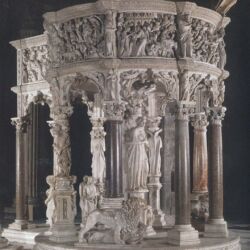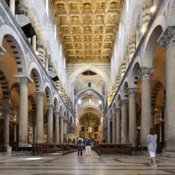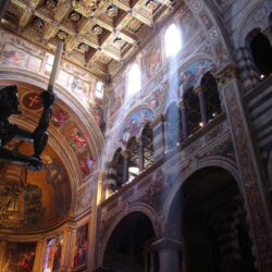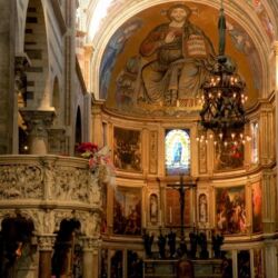 The Cathedral of Santa Maria Assunta stands in the centre of Piazza dei Miracoli and is the medieval cathedral of Pisa. Among the works inside it, there are: the Pulpit by Giovanni Pisano, and paintings depicting episodes from the Old Testament, painted by Andrea del Sarto, Il Sodoma and Domenico Beccafumi.
