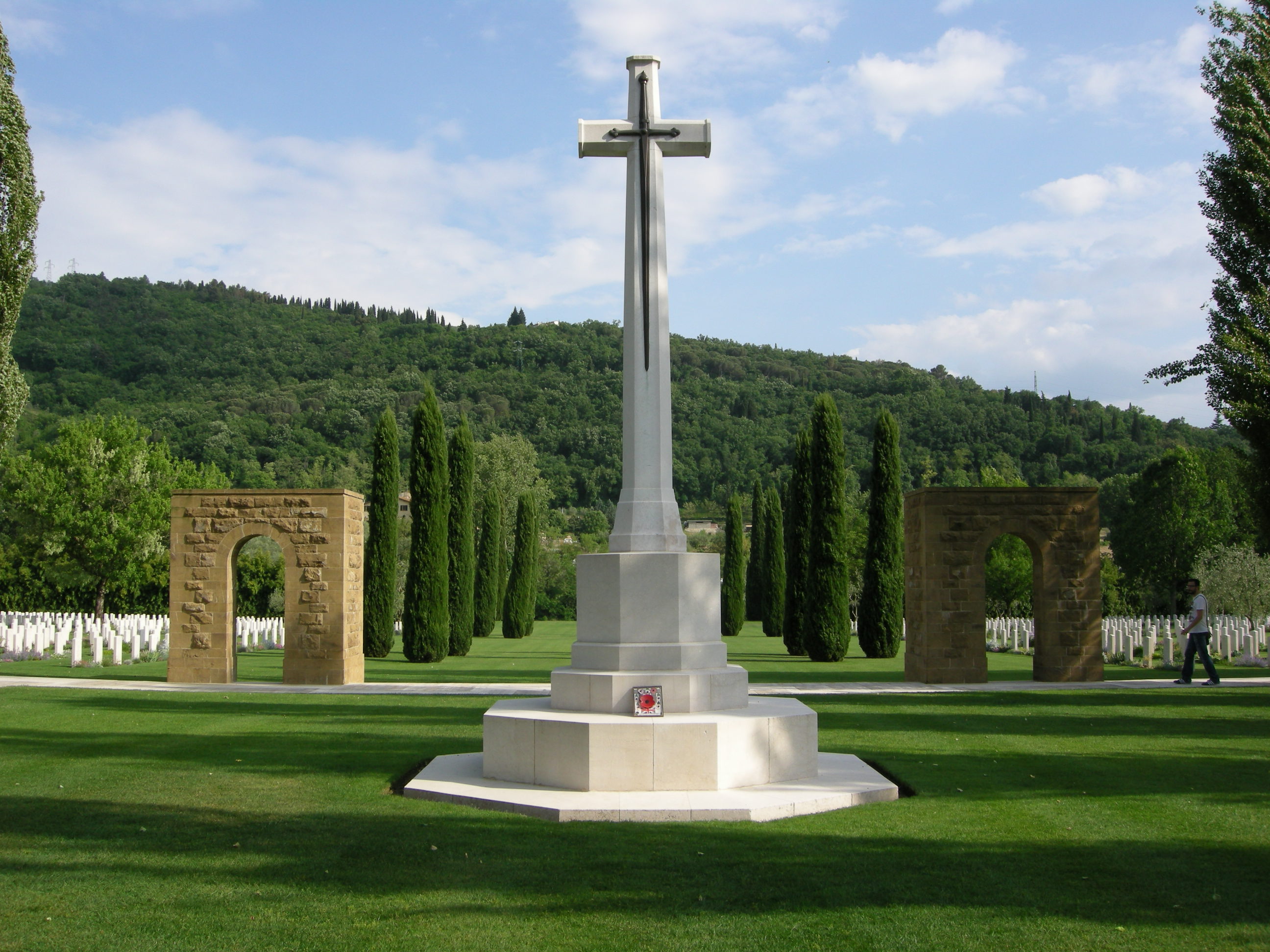 The Florence American Cemetery and Memorial is one of the 14 places in overseas territories chosen by the American Battle Monuments Commission as the final resting place for the remains of soldiers who died in the Italian Campaign of 1943-1945. The cemetery covers 70 hectares and is divided by two wide tree-lined avenues leading up to the three terraces on which the imposing memorial sits.