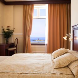 Located a few steps from Terrazza Mascagni on Livorno’s seafront, Grand Hotel Palazzo is located in a historical 19th-century building. The facility has a panoramic swimming pool on the top floor with a breath-taking view of the sea, modern rooms and suites and a wellness centre with a covered pool.