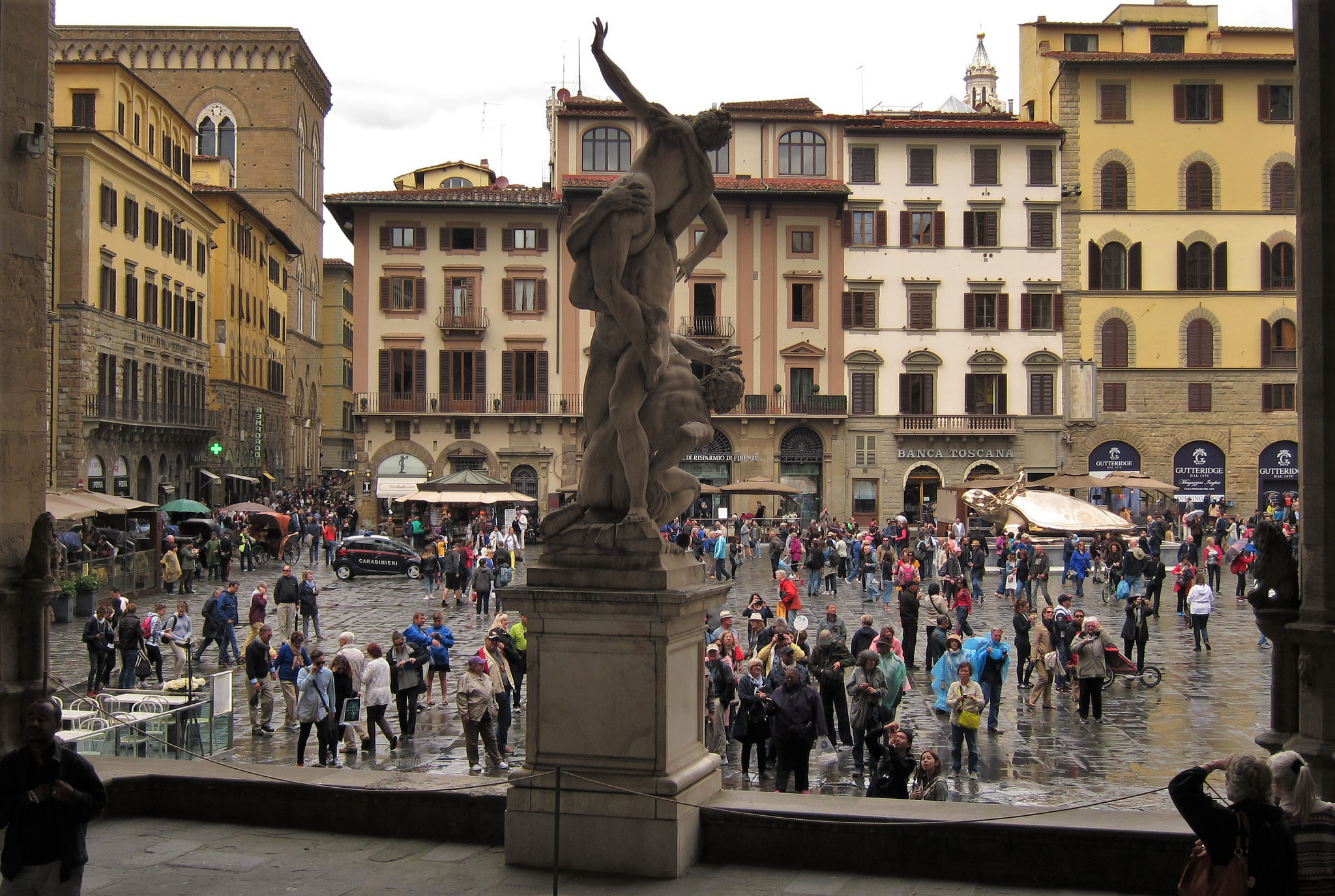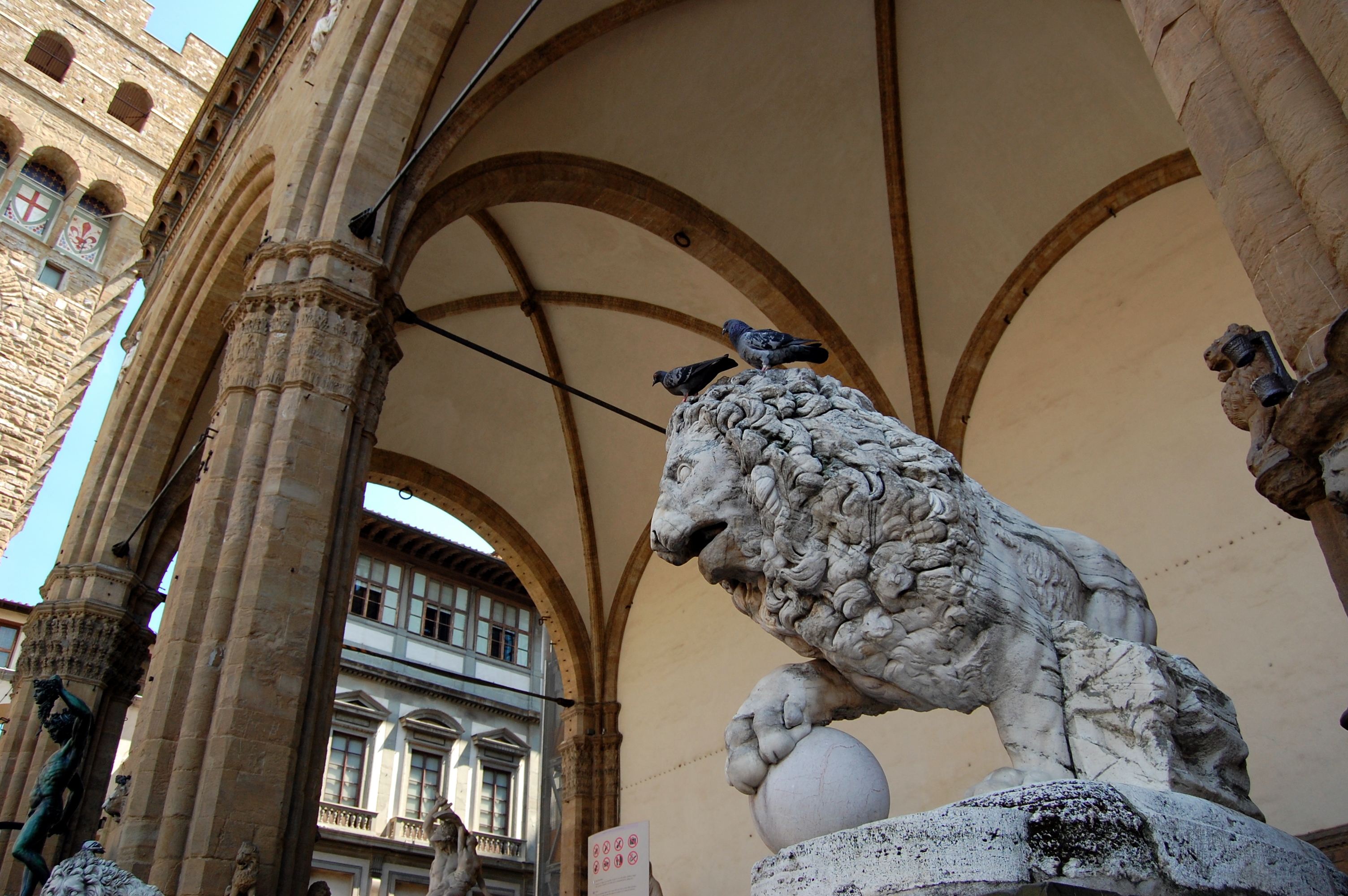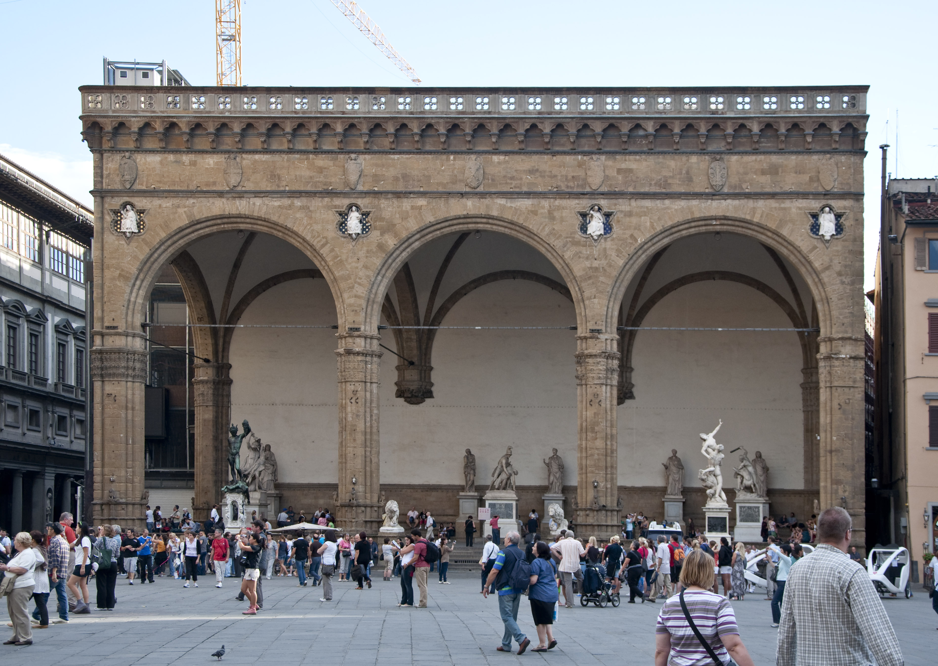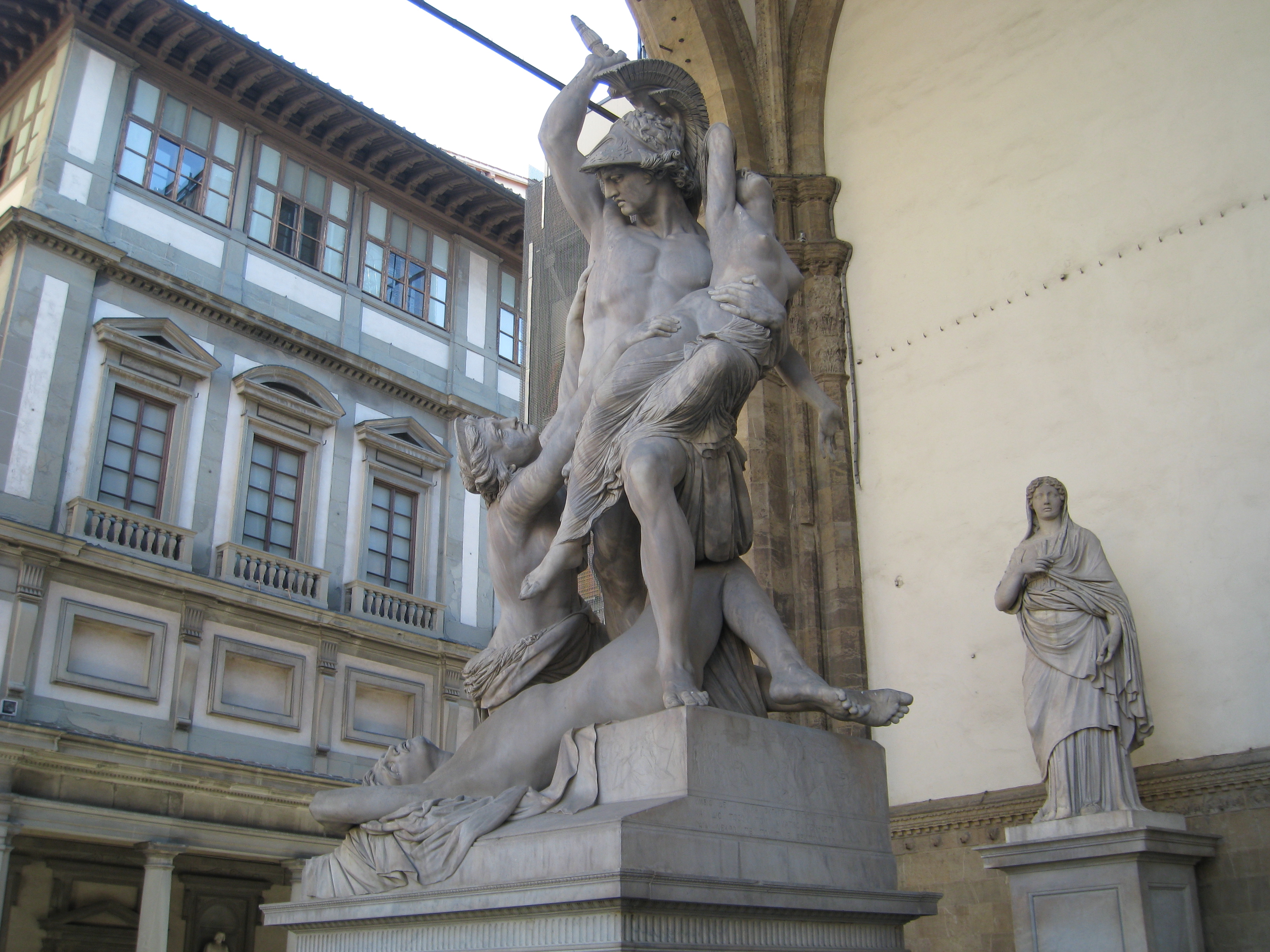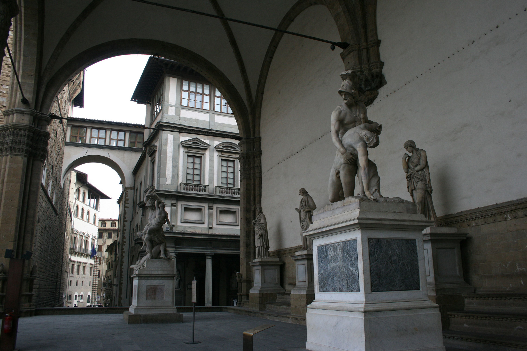 Built in the 14th century, it now hosts an open-air museum of sculpture with masterpieces such as the Perseus by Benvenuto Cellini, as well as the complex marble Rape of the Sabine Women and the Hercules and centaur Nessus by Giambologna.