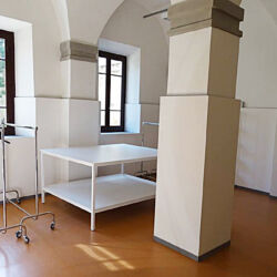 MDC Prato is situated in the ancient Convent of Santa Caterina (Dolce de’ Mazzamuti n.1, Street) and consists of: Three production offices for temporary use, furnished and equipped with a high-speed Internet connection and telephone lines; Casting room with waiting room; Hair and make-up room; Costumes room, equipped with dressing rooms with services and showers; Projection room with 30 seats and a Full HD screen and technical equipment.