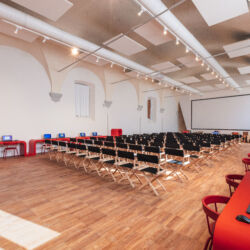 Since February 2021, MDC Prato (entrance: Santa Caterina n.11, Street) is also equipped with: Multifunctional hall of 240 square meters (90 seats) that can host live streaming and tv events, tv and web formats, small movie sets; External courtyard of 700 square meters.