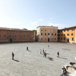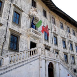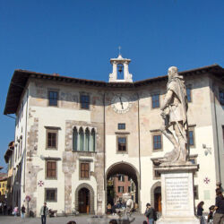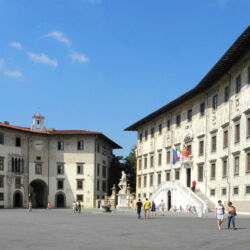 Piazza dei Cavalieri is situated in the historical centre of Pisa. It is the result of a vast work of urban reorganization commissioned by Cosimo I in 1558 and entrusted to Giorgio Vasari. The Palazzo della Carovana, location of the Scuola Normale Superiore, the Church of Santo Stefano dei Cavalieri, and the Palazzo dell’Orologio.