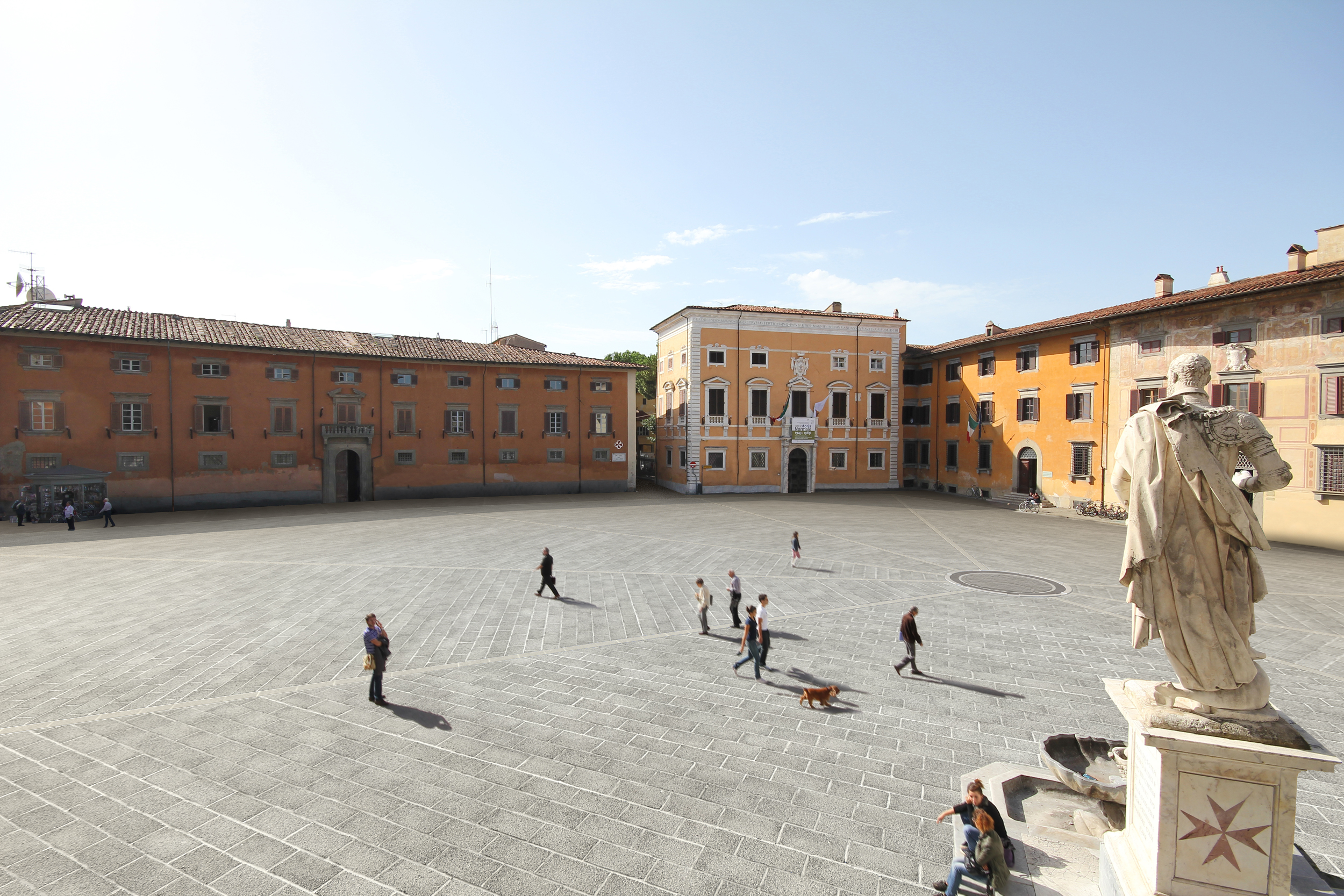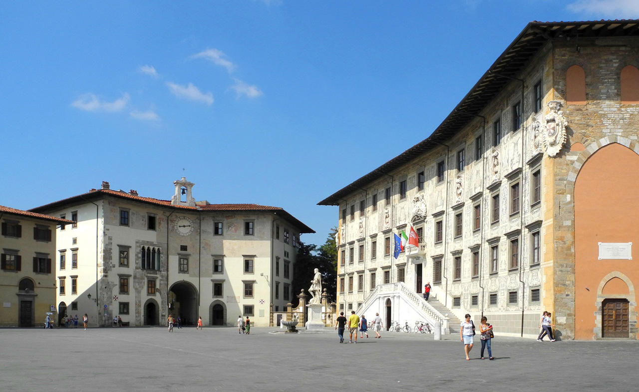 Piazza dei Cavalieri is situated in the historical centre of Pisa. It is the result of a vast work of urban reorganization commissioned by Cosimo I in 1558 and entrusted to Giorgio Vasari. The Palazzo della Carovana, location of the Scuola Normale Superiore, the Church of Santo Stefano dei Cavalieri, and the Palazzo dell’Orologio.