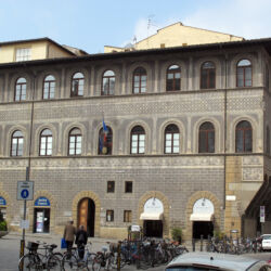 Piazza Ognissanti is a square along the left bank of the river Arno and it is characterised by the church of the same name and by Palazzo Lenzi Quaratesi, headquartes of the Institure Français. In the centre of the square there is a bronzo sculpture by Romano Romanelli depicting Hercules and the Lion.