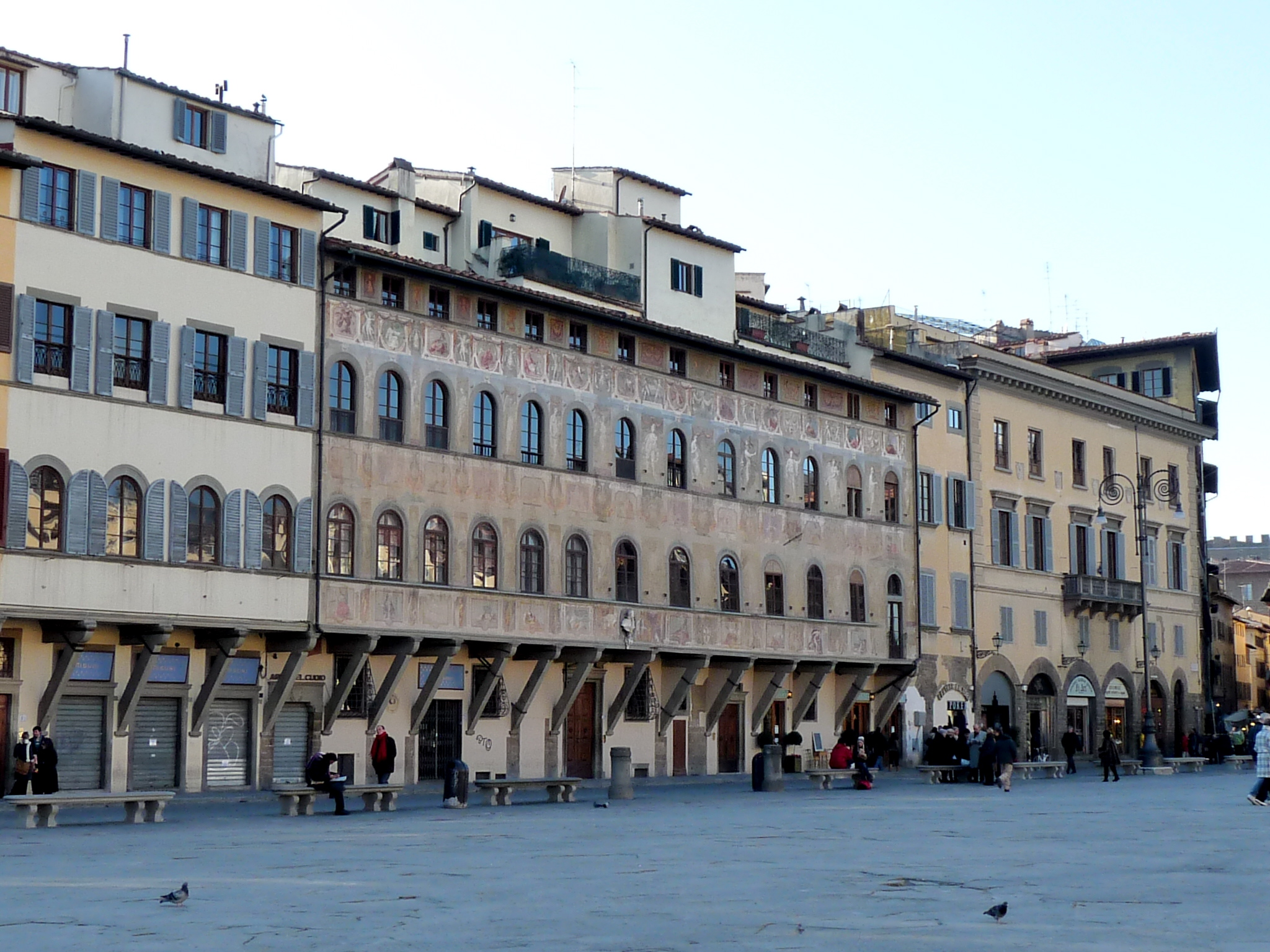 Piazza Santa Croce is one of Florence’s main squares and it is dominated by the Basilica of the same name. To the right of the Basilica, preceded by a fourteenth century cloister, is the entrance to the Pazzi Chapel, a gem of Renaissance architecture by Brunelleschi. The square is delimited by important palaces such as: Palazzo Cocchi-Serristori, Palazzo dell’Antella and Palazzo di Maffeo Barberini.