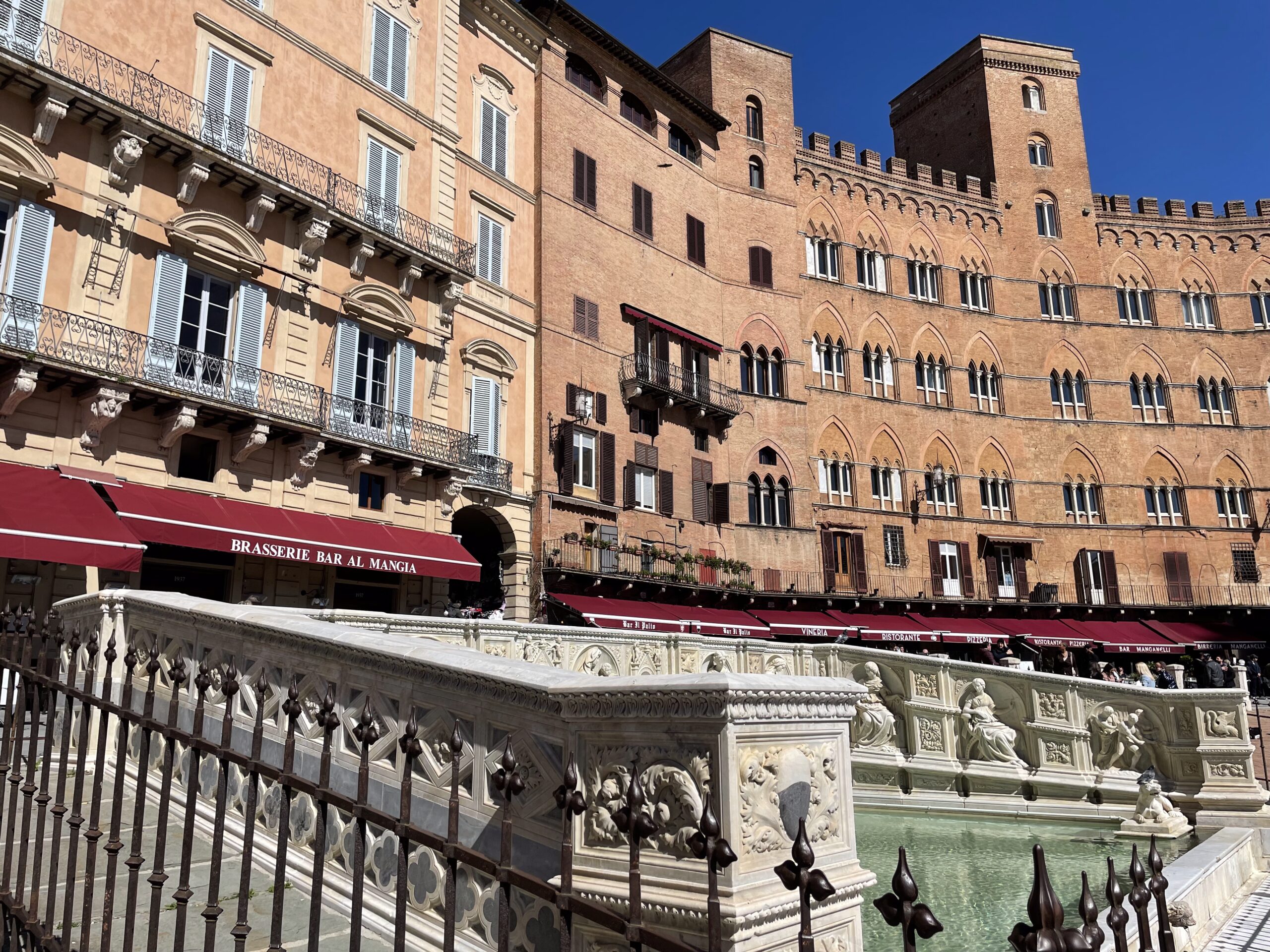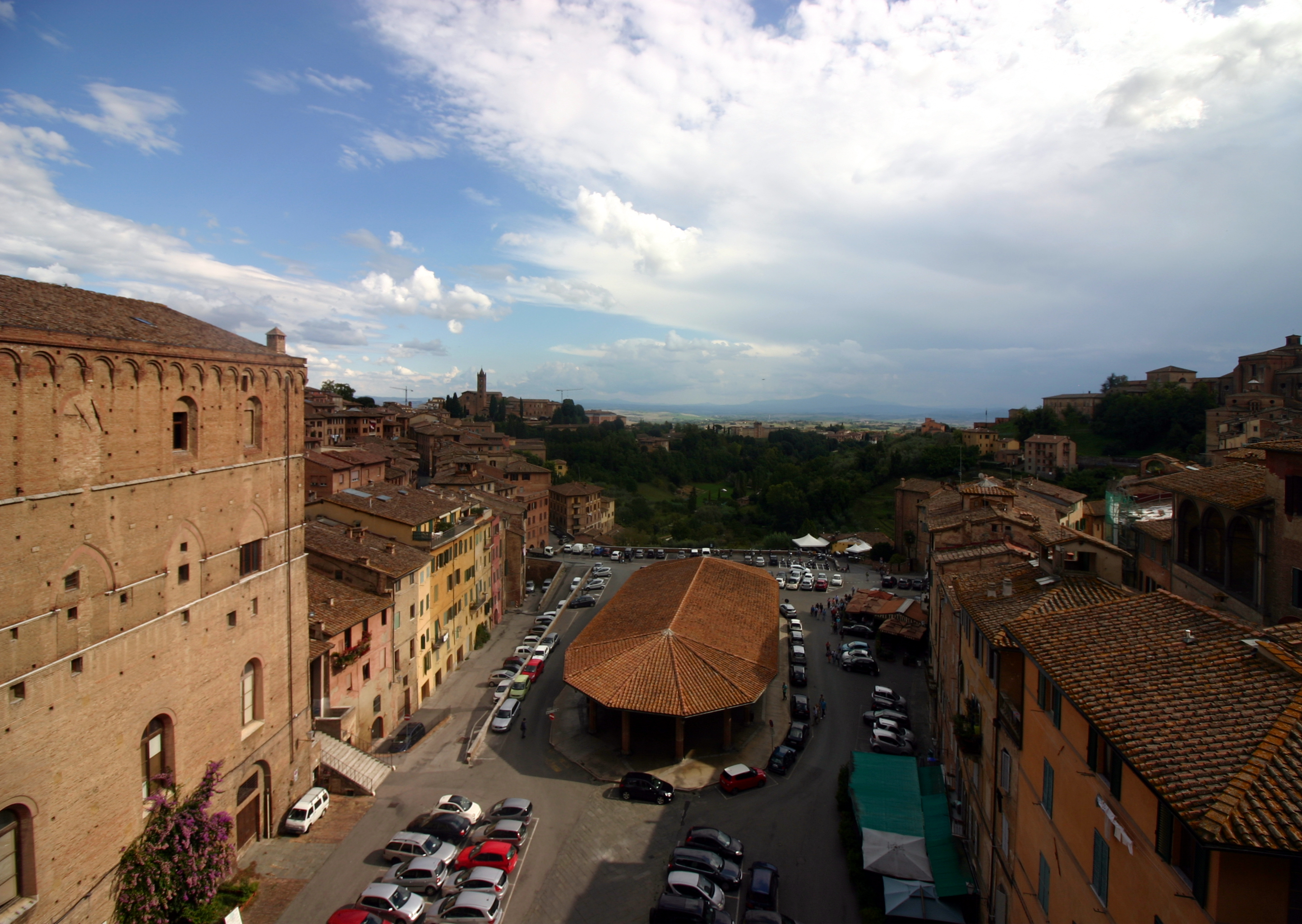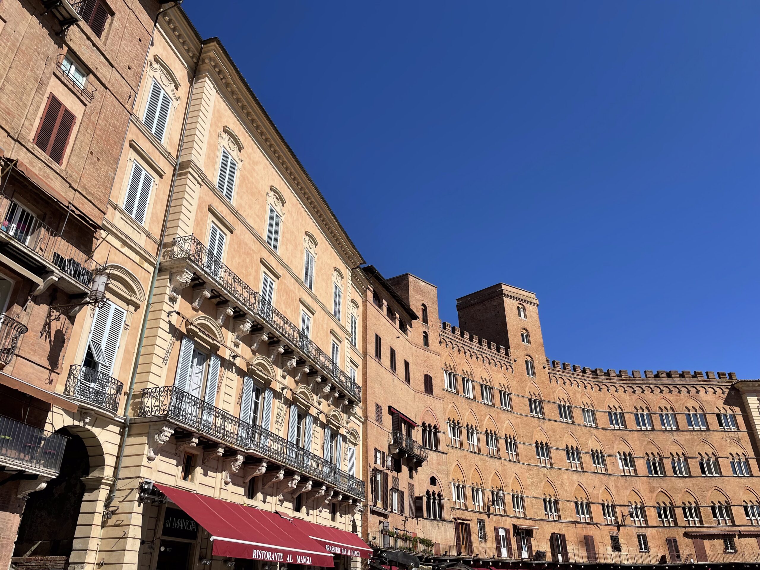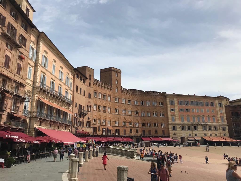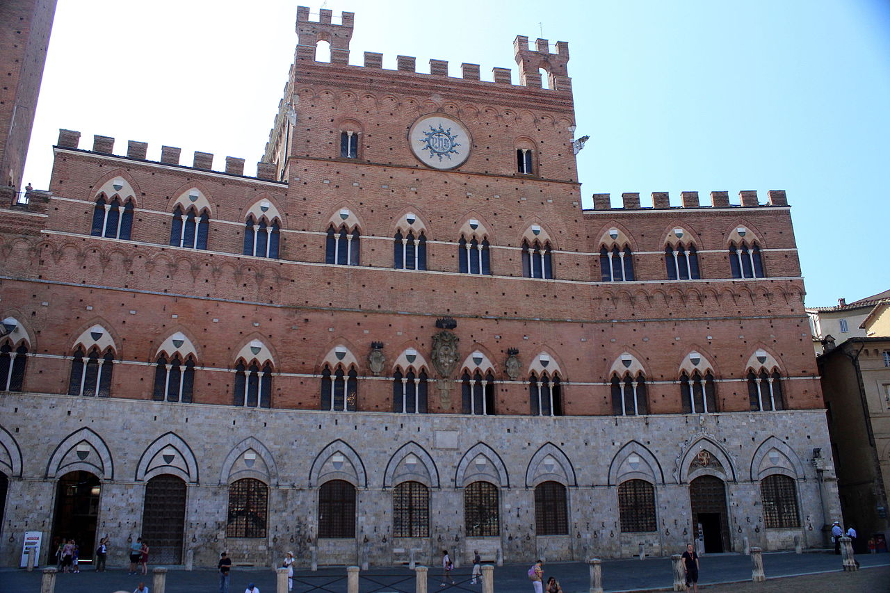 Siena is located in the heart of Tuscany and is surrounded by hills. It is one of the most important medieval cities in Italy. The focal point of the city is the famous Piazza del Campo, with its unusual shell shape, in which the famous Palio is held. The square is dominated by the red Palazzo Pubblico and its tower, called Torre del Mangia. The Palazzo Pubblico, like the Siena Cathedral, was built during the Government of the Nine, in the 13th century, the period of maximum economic and cultural splendour in the city.