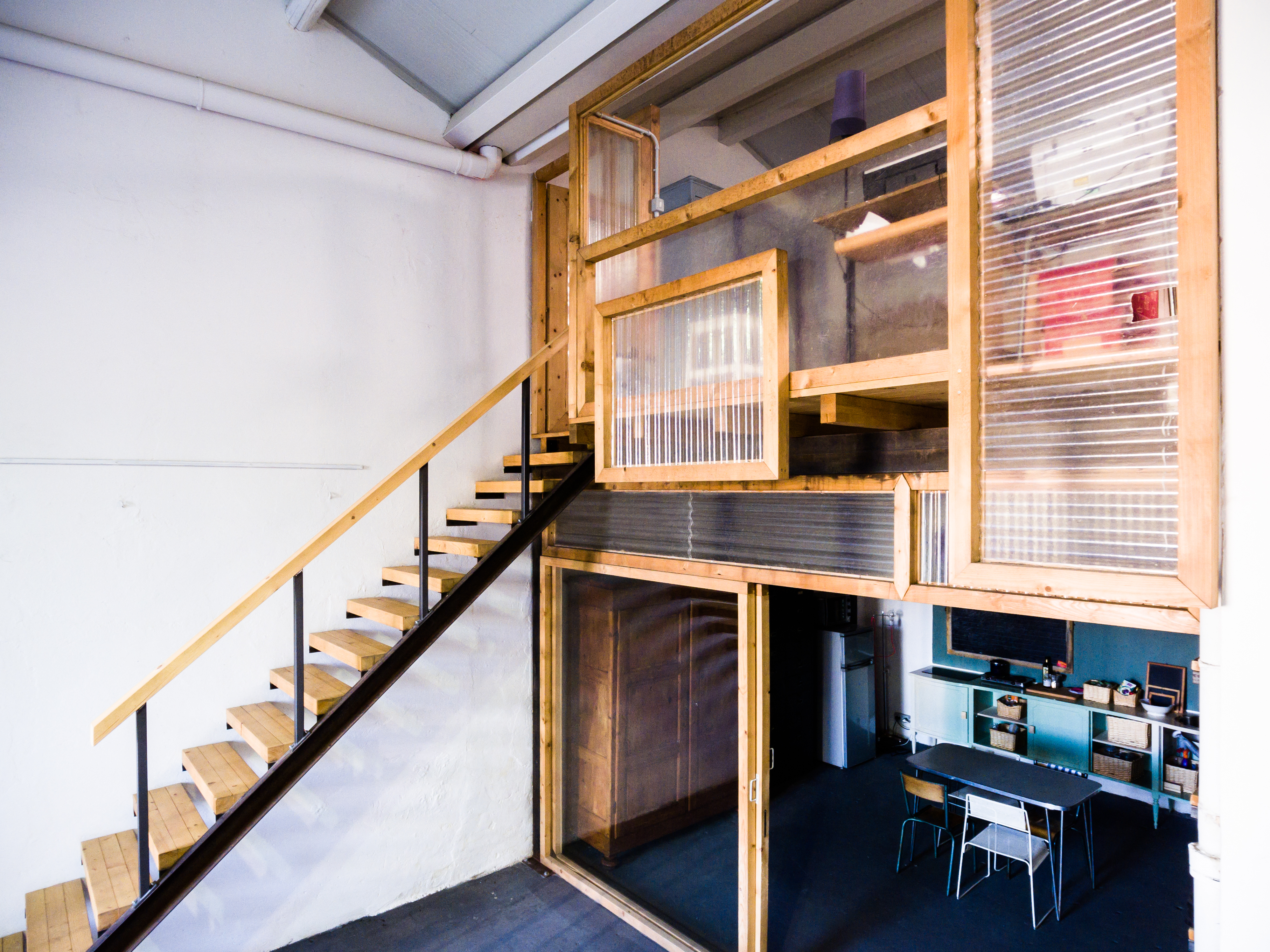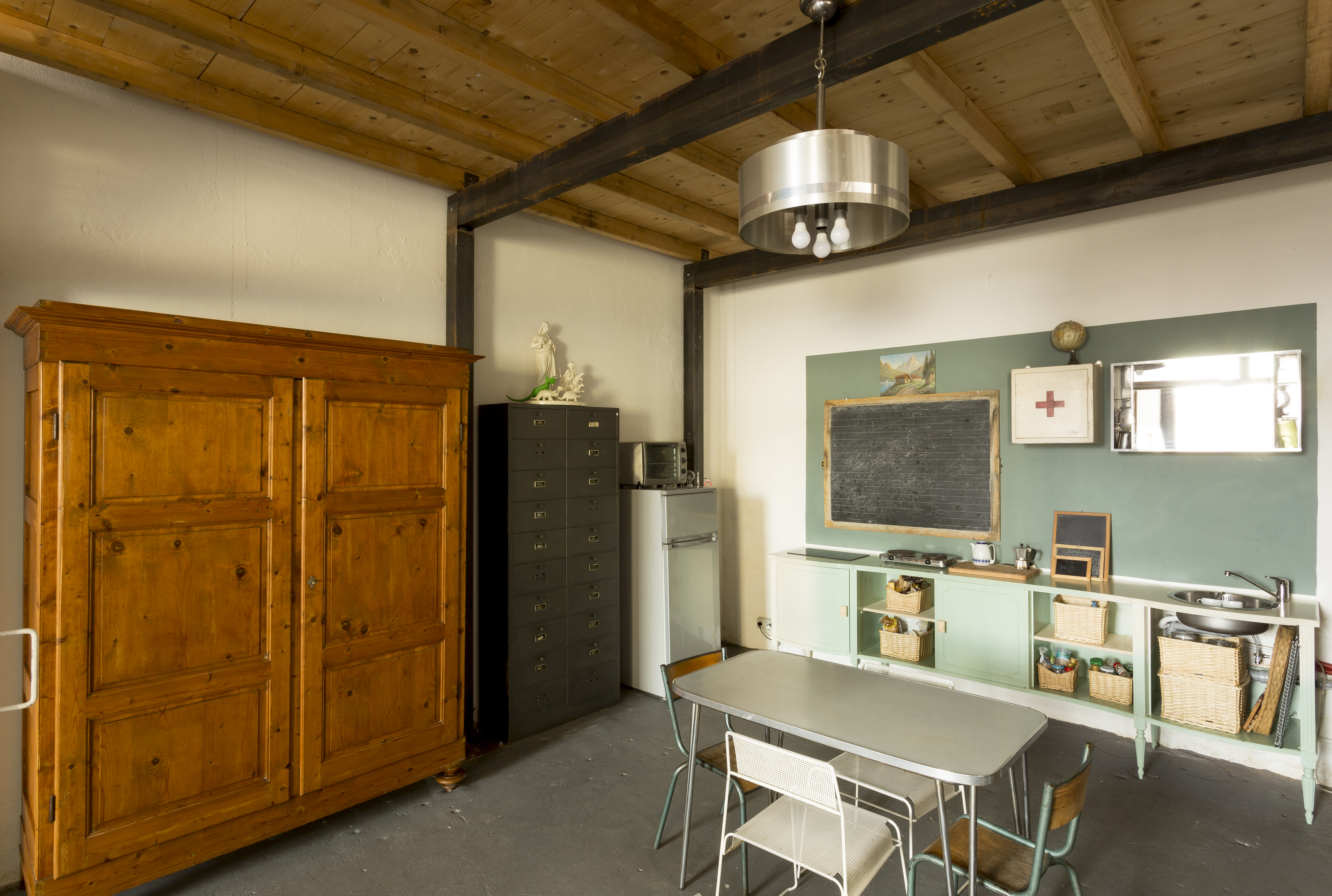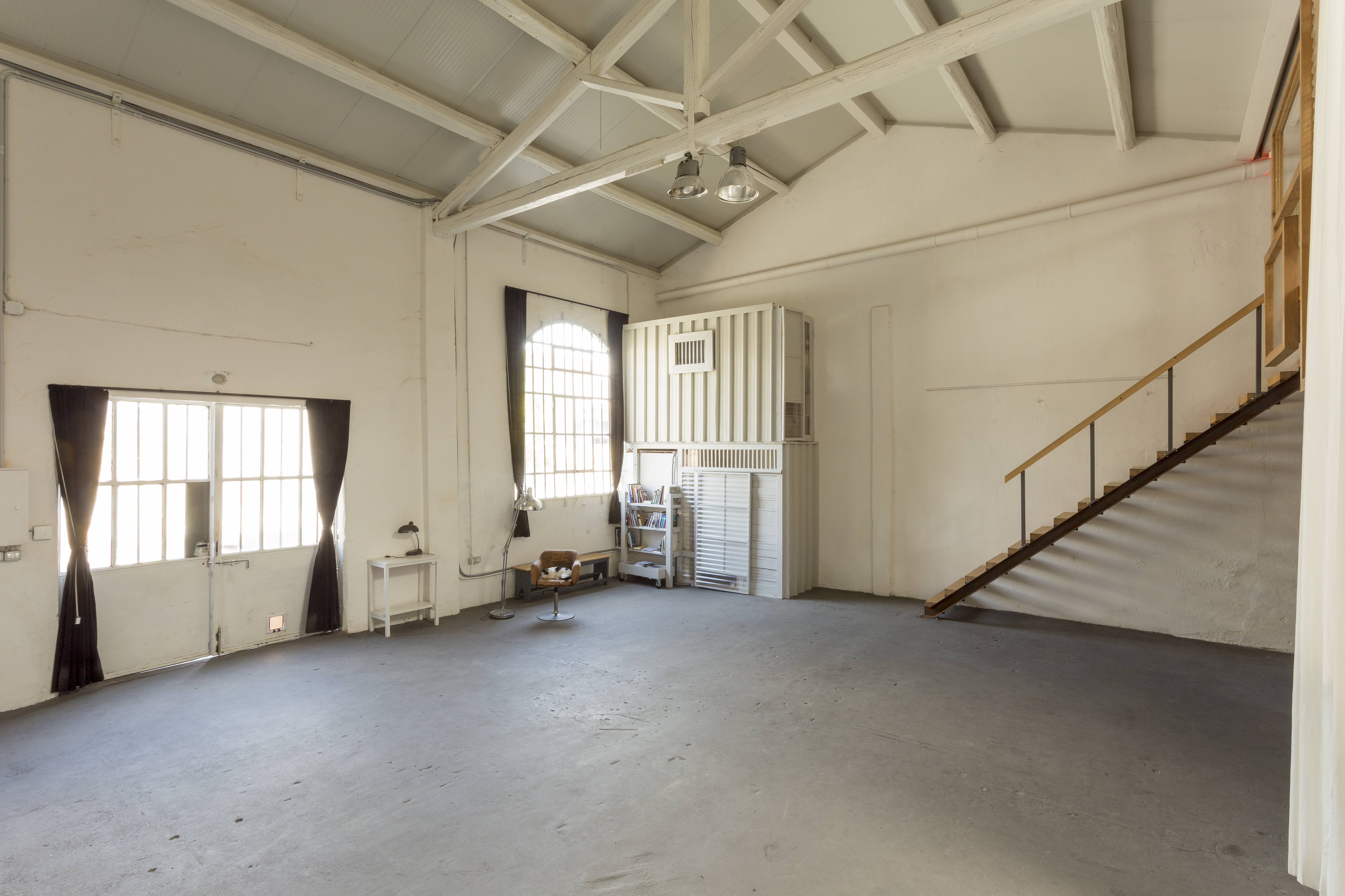 Studio Corte 17 appears today as an open space created from an industrial building from the early 1900s. Articulated in a laboratory area and multipurpose space of 150 square meters, it overlooks the courtyard with a large window and an industrial door. The roof is made up of white painted trusses.