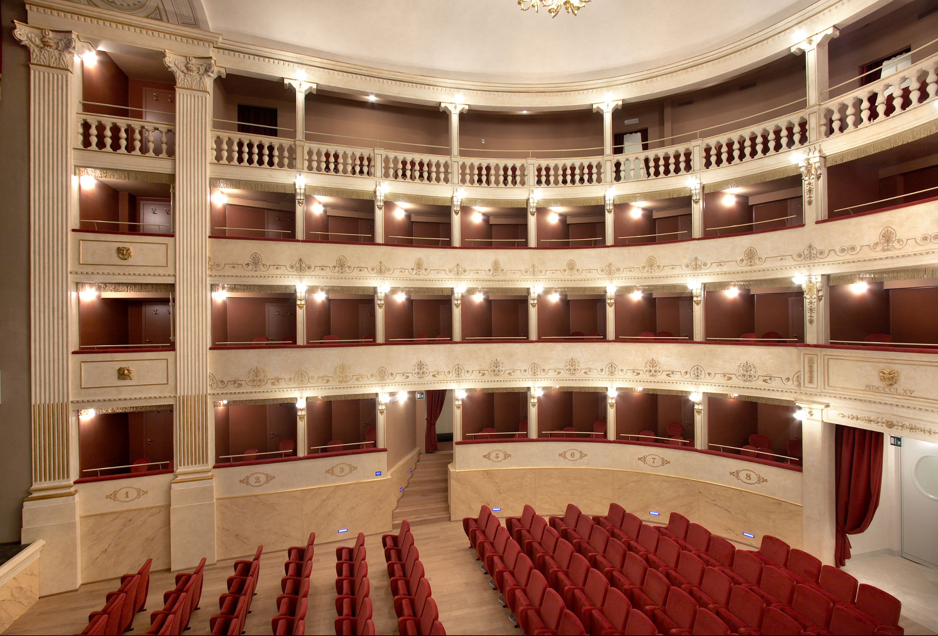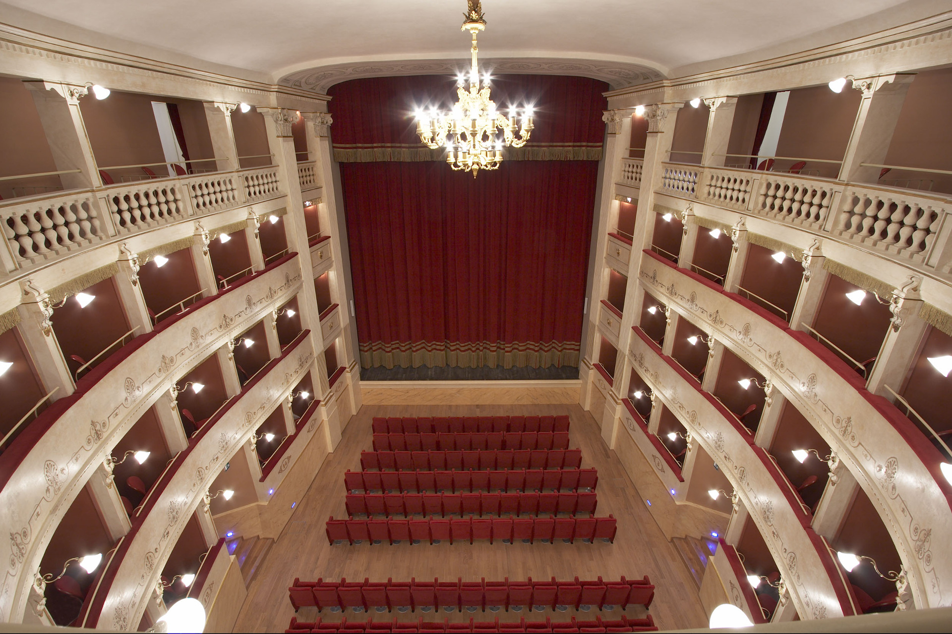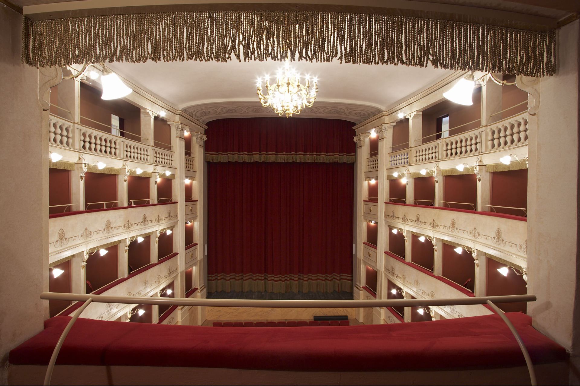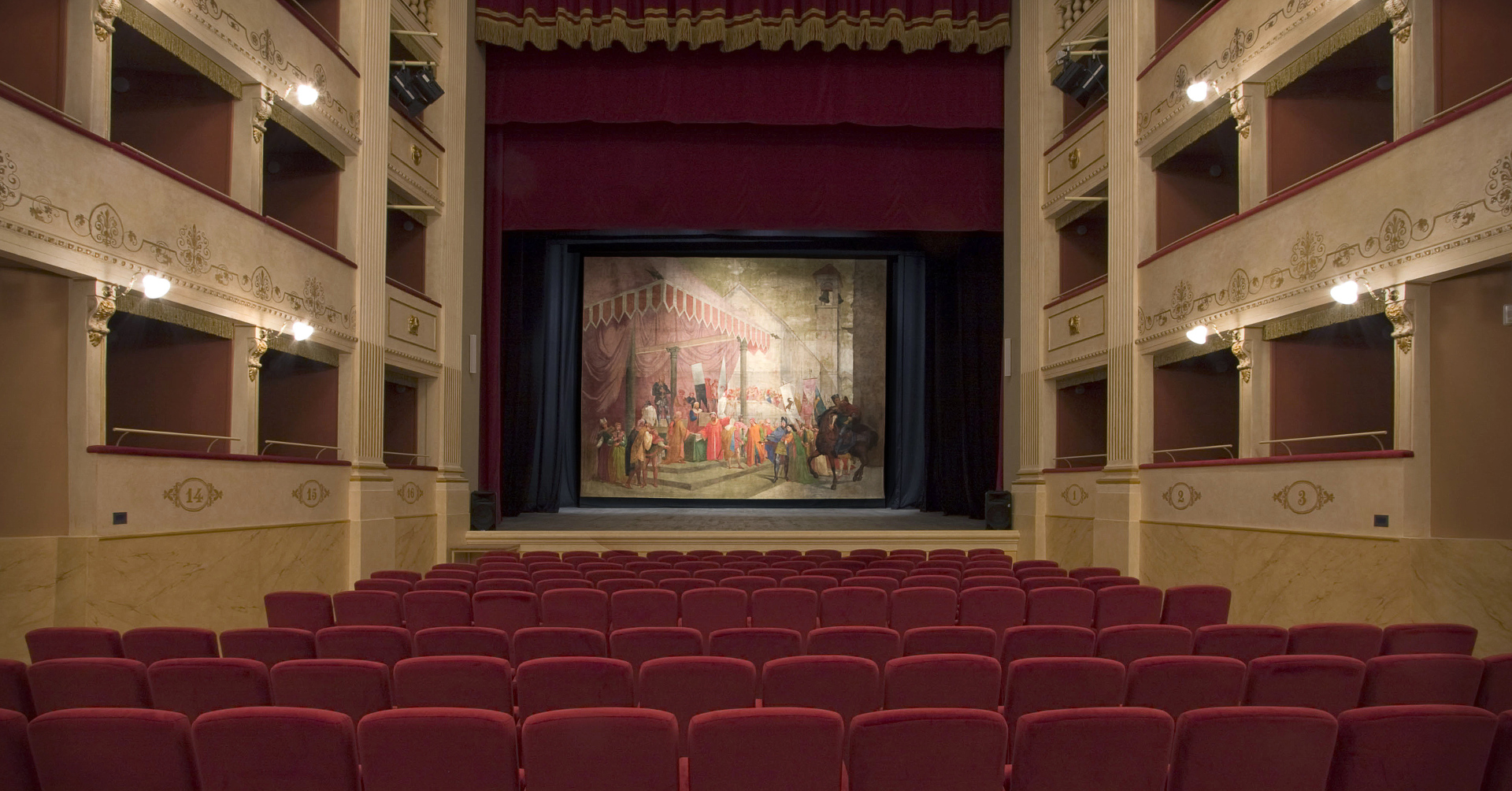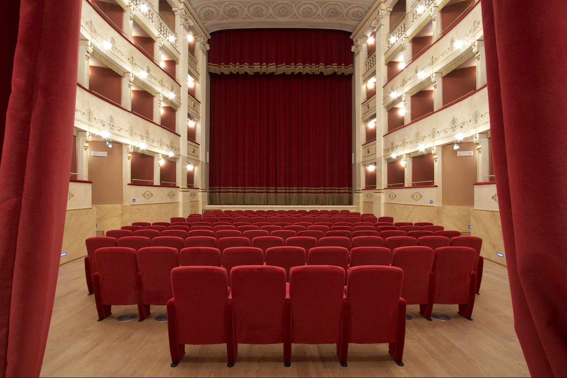 The Teatro del Popolo in Castelfiorentino has a horseshoe-shaped layout, stalls and three rows of boxes. It was built according to a design by the engineer Gaetano Niccoli and inaugurated in 1867. Over the years, it underwent various renovations and today it contains 348 seats between stalls, boxes and gallery. Furthermore, a passageway runs from the theatre and can also be used as an exhibition gallery, communicating with the “Foyer” with 148 seats.