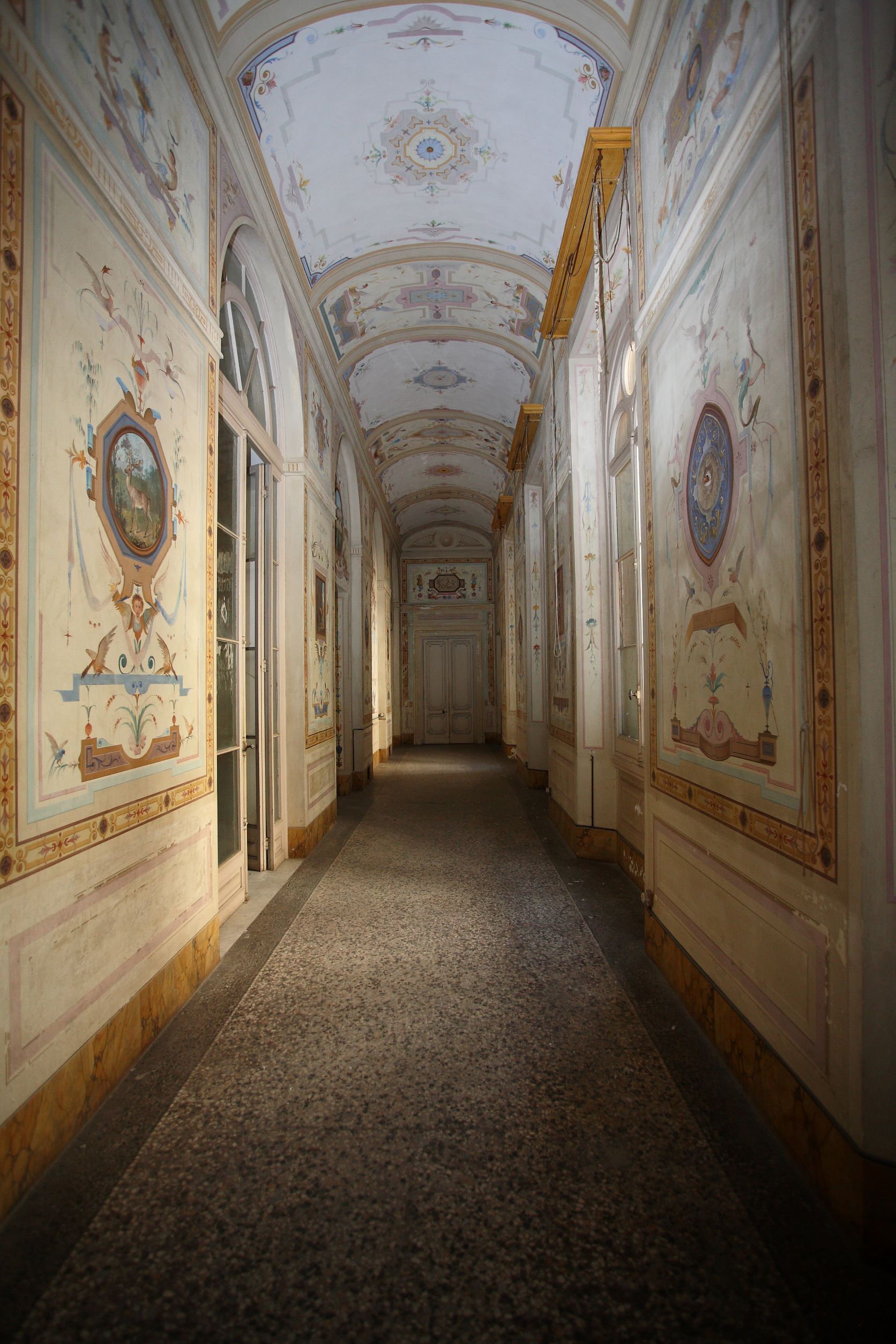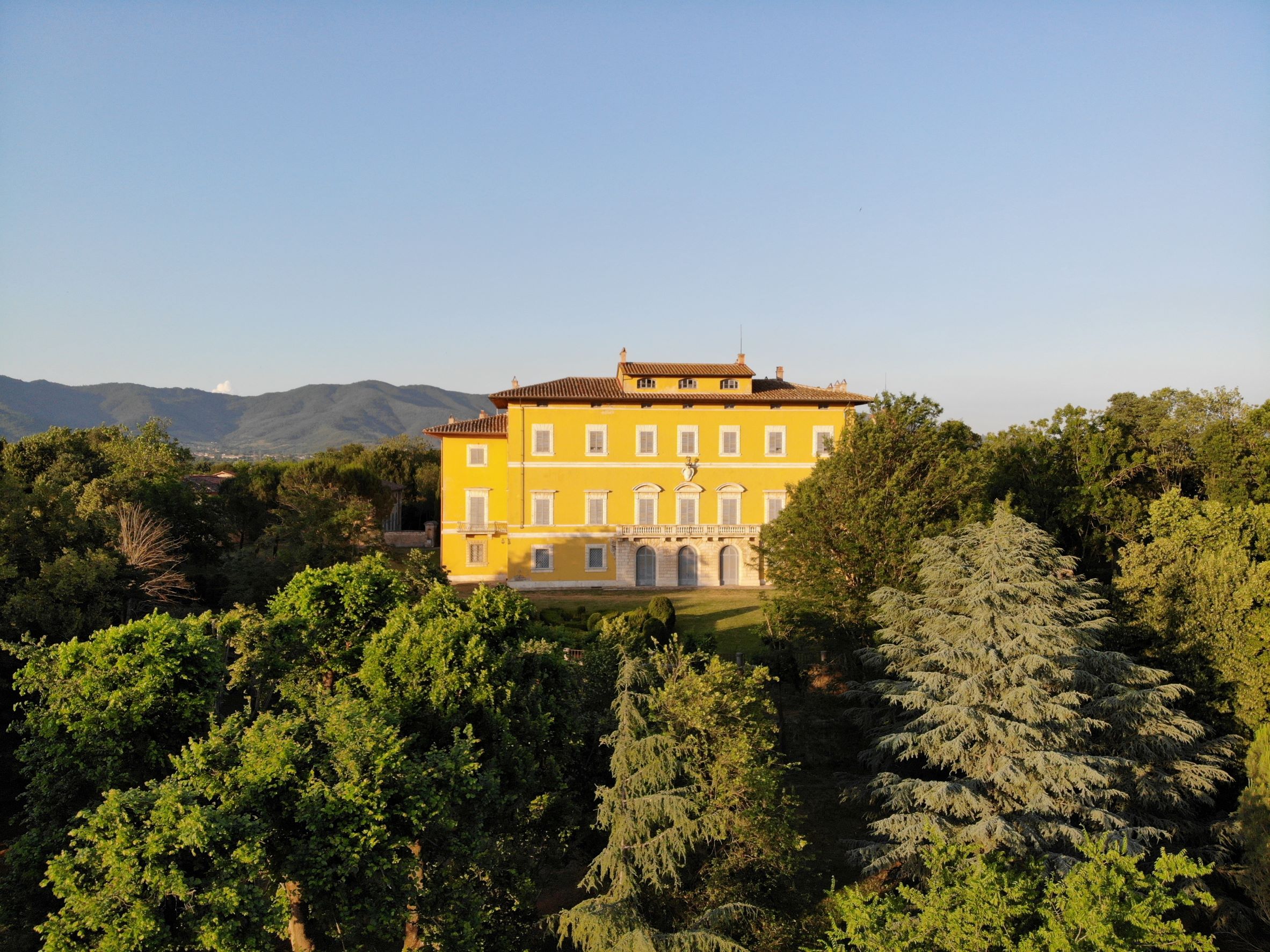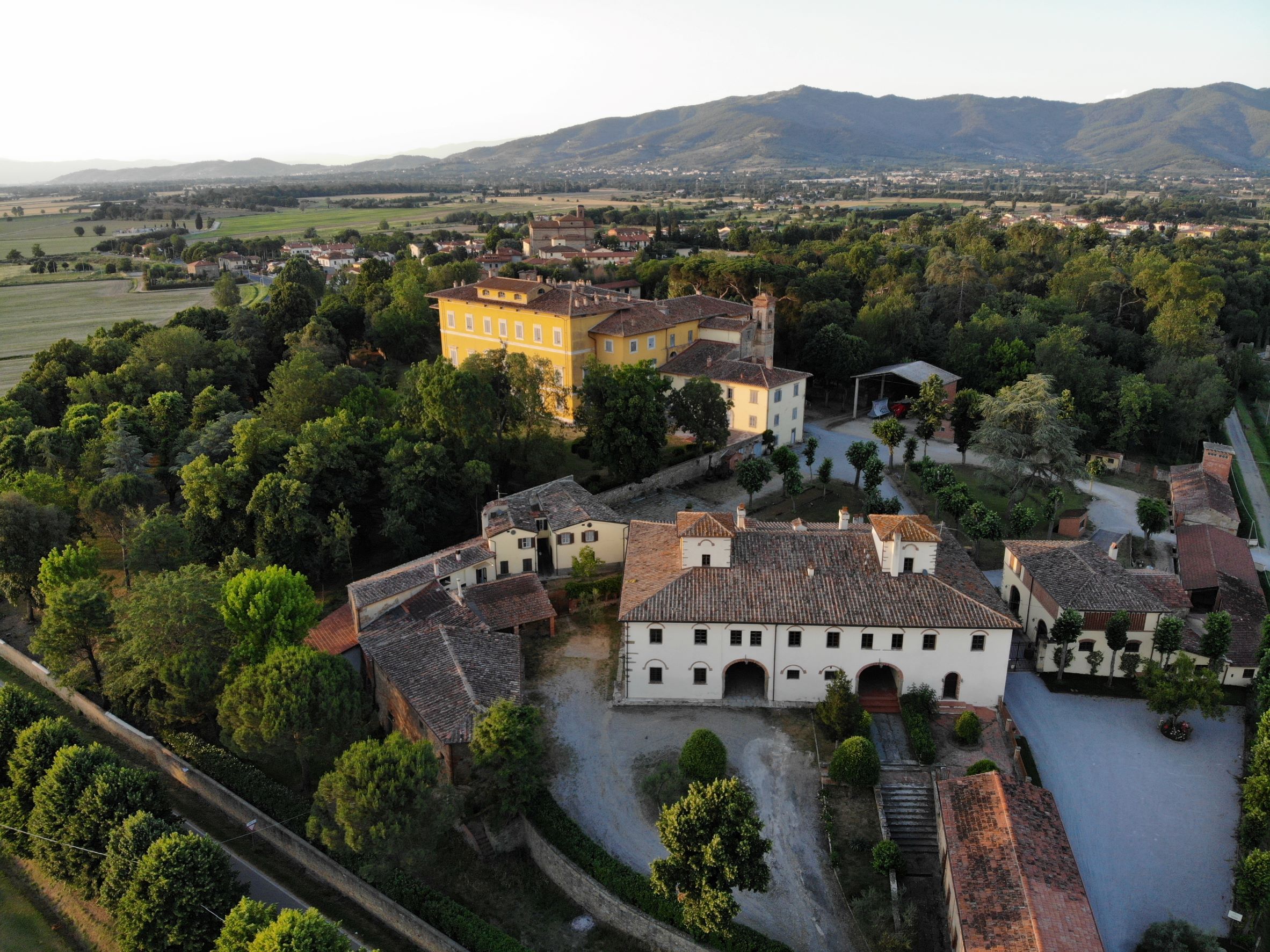 The building called Villa-Fattoria di Frassineto, is evidence of the Villa-Farm type of settlements, dating back to the sixteenth century and subsequently modified in the nineteenth century. The farm covers about 500 hectares, 30 of which are vineyards; the Villa, of about 5400 square meters, is located on a mezzanine floor accessible via a spectacular two-flight staircase in the shape of an exedra. A large park of eight hectares, closed in by walls, surrounds the entire villa.