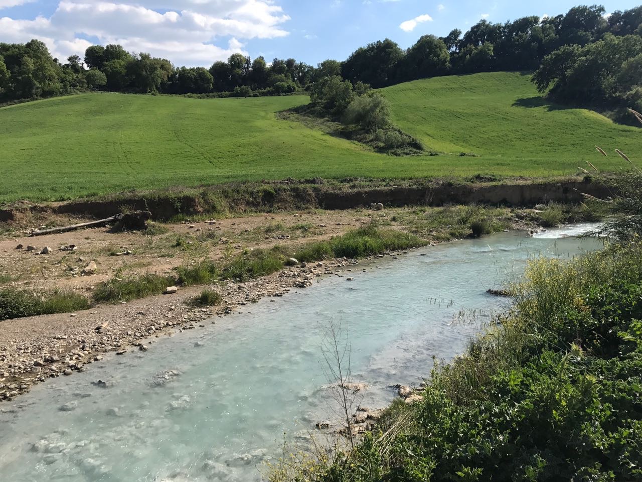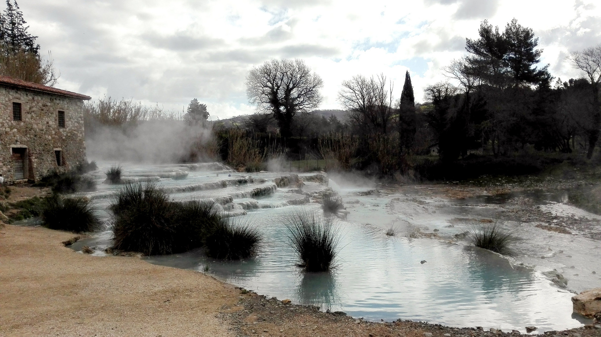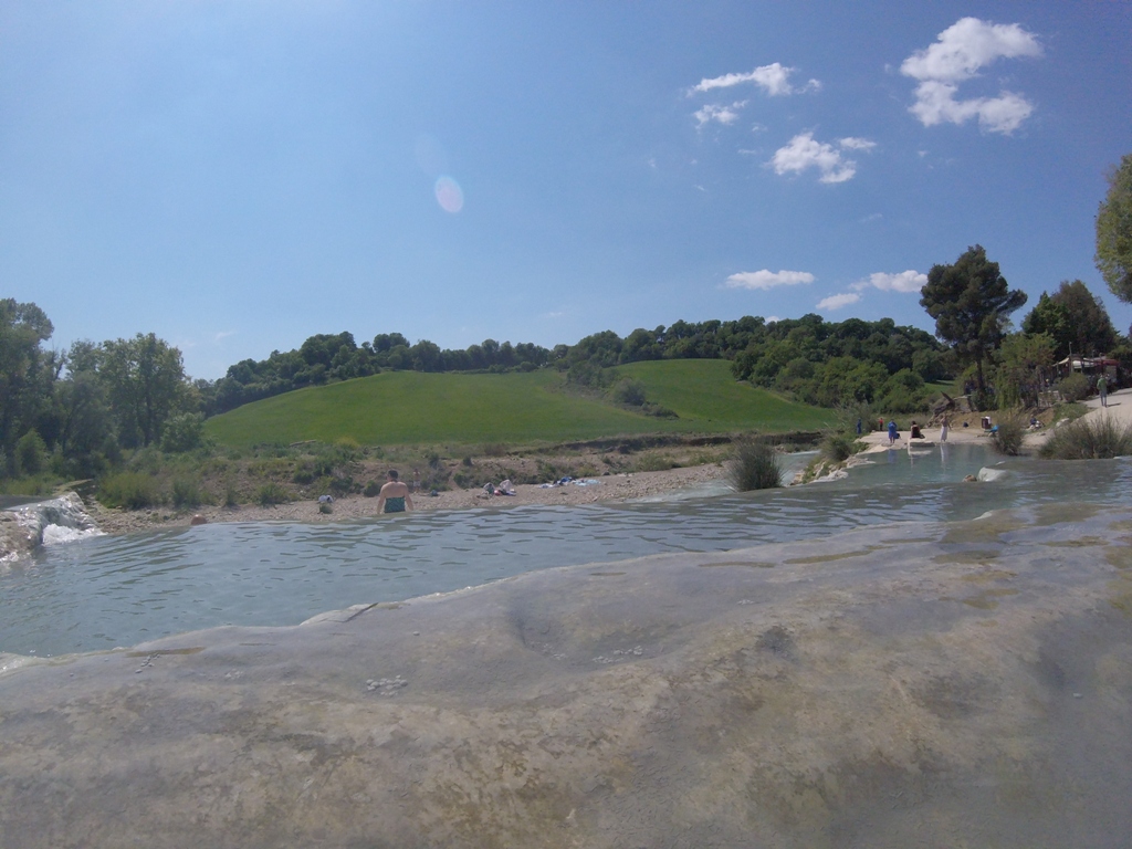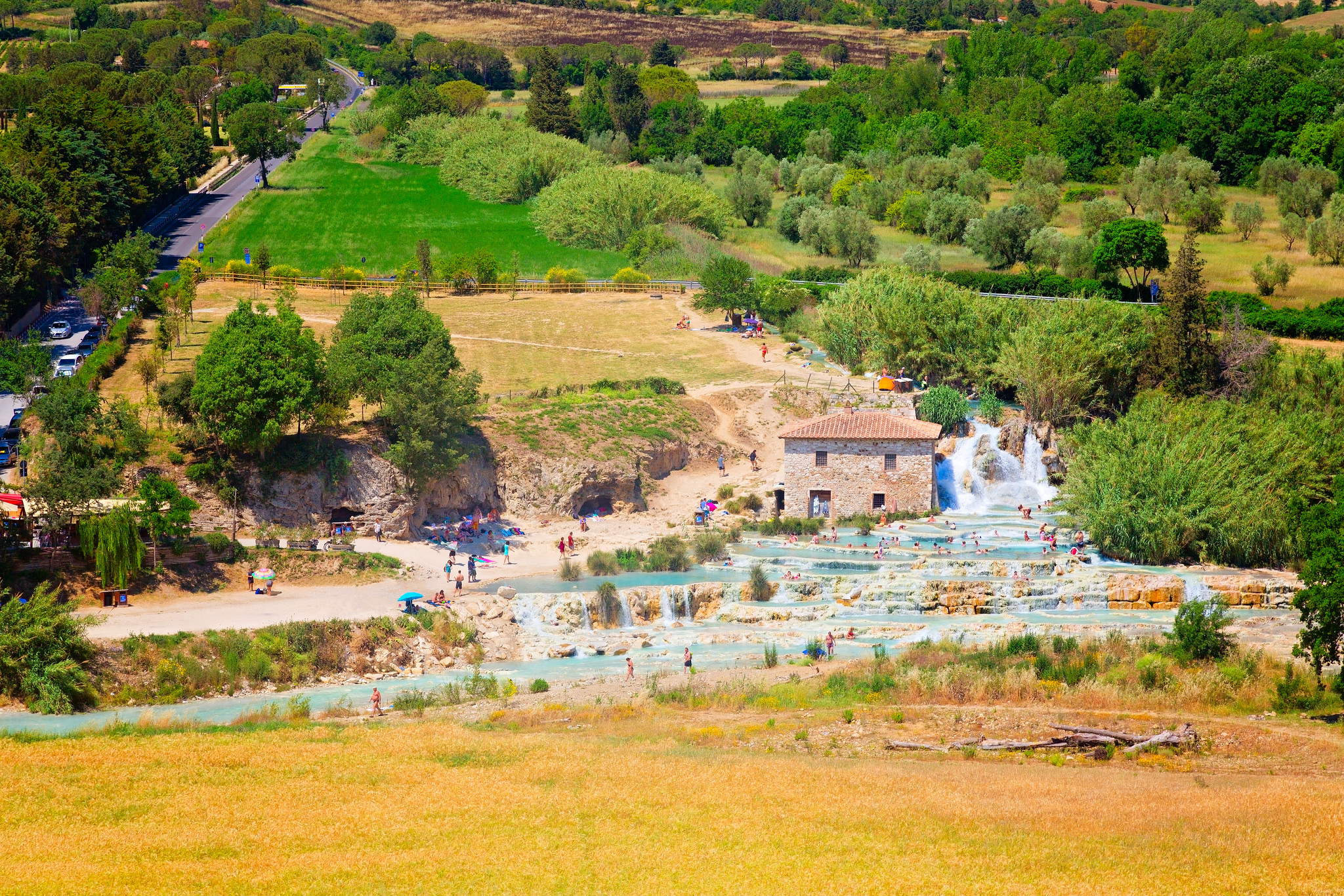 The Terme di Saturnia, a collection of thermal springs with sulphurous water, are located in the heart of the Tuscan Maremma area. The main free thermal waterfalls are Cascate del Mulino, also known as the Cascatelle di Saturnia, consisting of small pools of thermal sulphurous waters carved into the limestone rock.