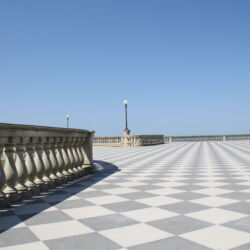 The Mascagni Terrace, one of the most elegant and picturesque locations in Livorno, is located on the seafront at the end of Viale Italia. The area, now home to this viewpoint, was once the site of a small fortress that was part of the coast’s defence system. The characteristic floor consists of an 8,700-mq chessboard formed by 34,800 black and white tiles. The Terrace was dedicated to Costanzo Ciano. In the post-war period it was extended significantly towards the north, using the ruins of the city centre destroyed by the bombing, and was therefore re-dedicated to Livornese composer Pietro Mascagni.
