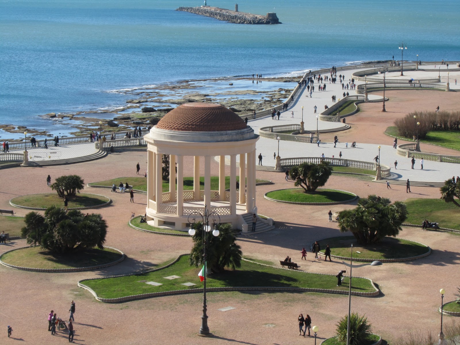 The Mascagni Terrace, one of the most elegant and picturesque locations in Livorno, is located on the seafront at the end of Viale Italia. The area, now home to this viewpoint, was once the site of a small fortress that was part of the coast’s defence system. The characteristic floor consists of an 8,700-mq chessboard formed by 34,800 black and white tiles. The Terrace was dedicated to Costanzo Ciano. In the post-war period it was extended significantly towards the north, using the ruins of the city centre destroyed by the bombing, and was therefore re-dedicated to Livornese composer Pietro Mascagni.