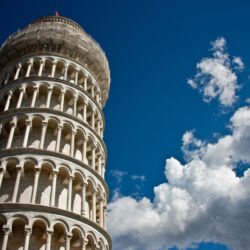 The Tower of Pisa, famous because it leans, is the bell tower of the cathedral of Santa Maria Assunta in Piazza dei Miracoli. Built between the 12th and 14th centuries, it is about 56 metres high with 8 floors and it is one of the symbols not only of Tuscany but also of the whole world. The inclination, which is about 4 degrees, is due to instability of the ground beneath it, which already took place in the first phases of its construction.