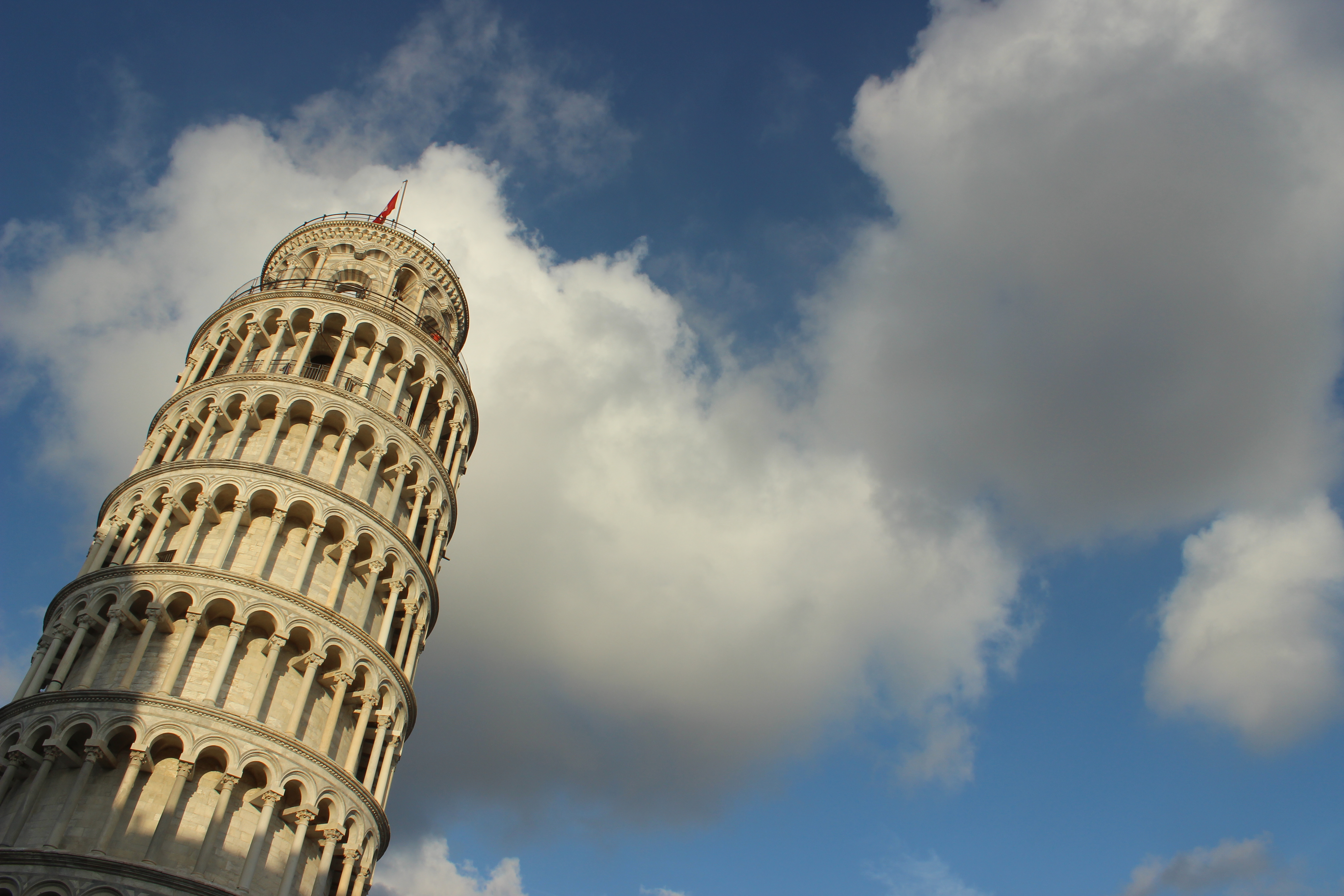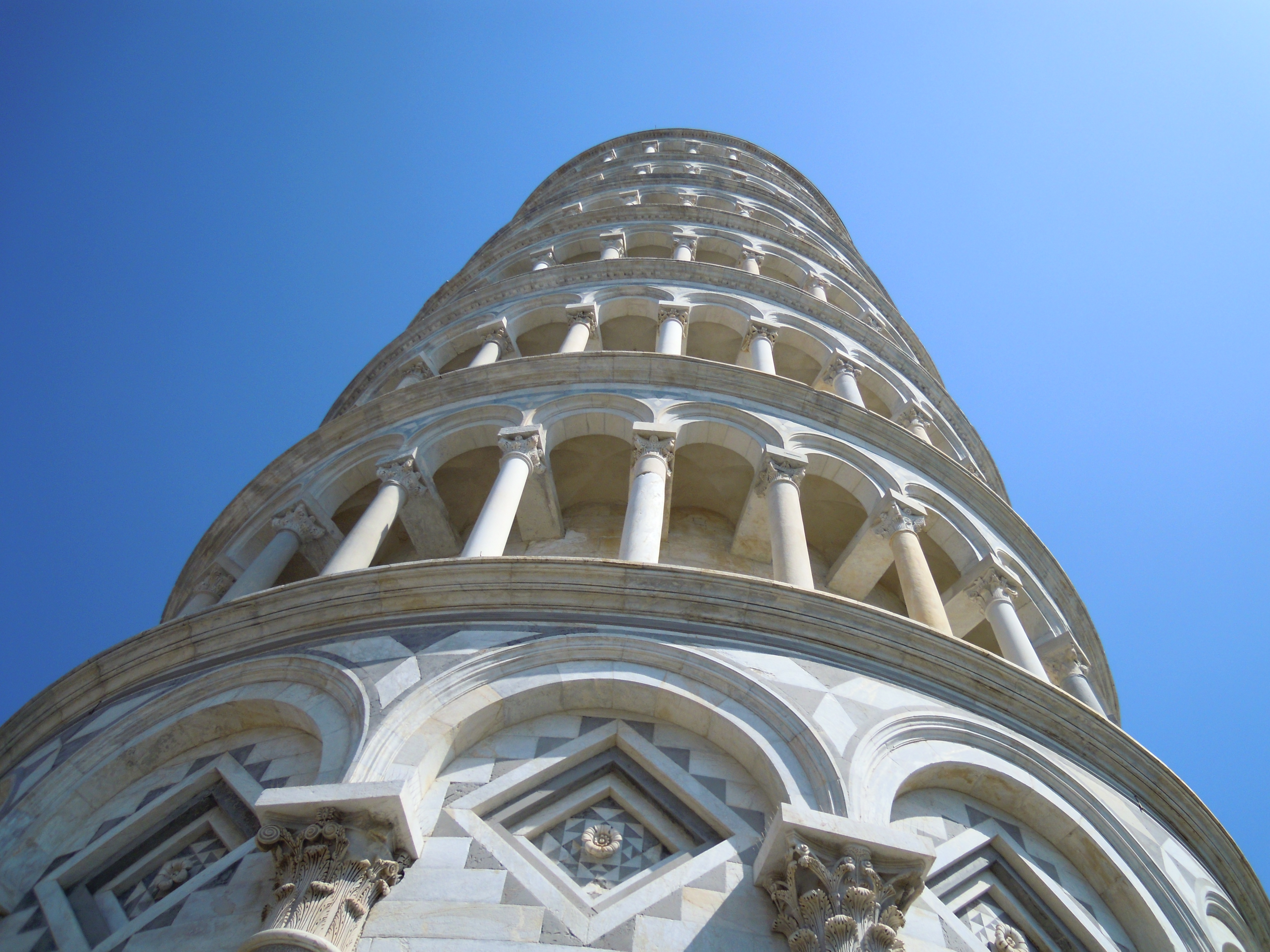 The Tower of Pisa, famous because it leans, is the bell tower of the cathedral of Santa Maria Assunta in Piazza dei Miracoli. Built between the 12th and 14th centuries, it is about 56 metres high with 8 floors and it is one of the symbols not only of Tuscany but also of the whole world. The inclination, which is about 4 degrees, is due to instability of the ground beneath it, which already took place in the first phases of its construction.