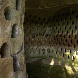 In the Città del Tufo Archaeological Park are the Vie Cave of Sorano and Sovana, large roads carved out of the tuff hills leading to Etruscan necropolises. Among the most picturesque are Via Cava del Cavone, which is over 1km long and 4m wide in places, and Via Cava di San Sebastiano with its 25m tall walls, which winds its way through the woods.