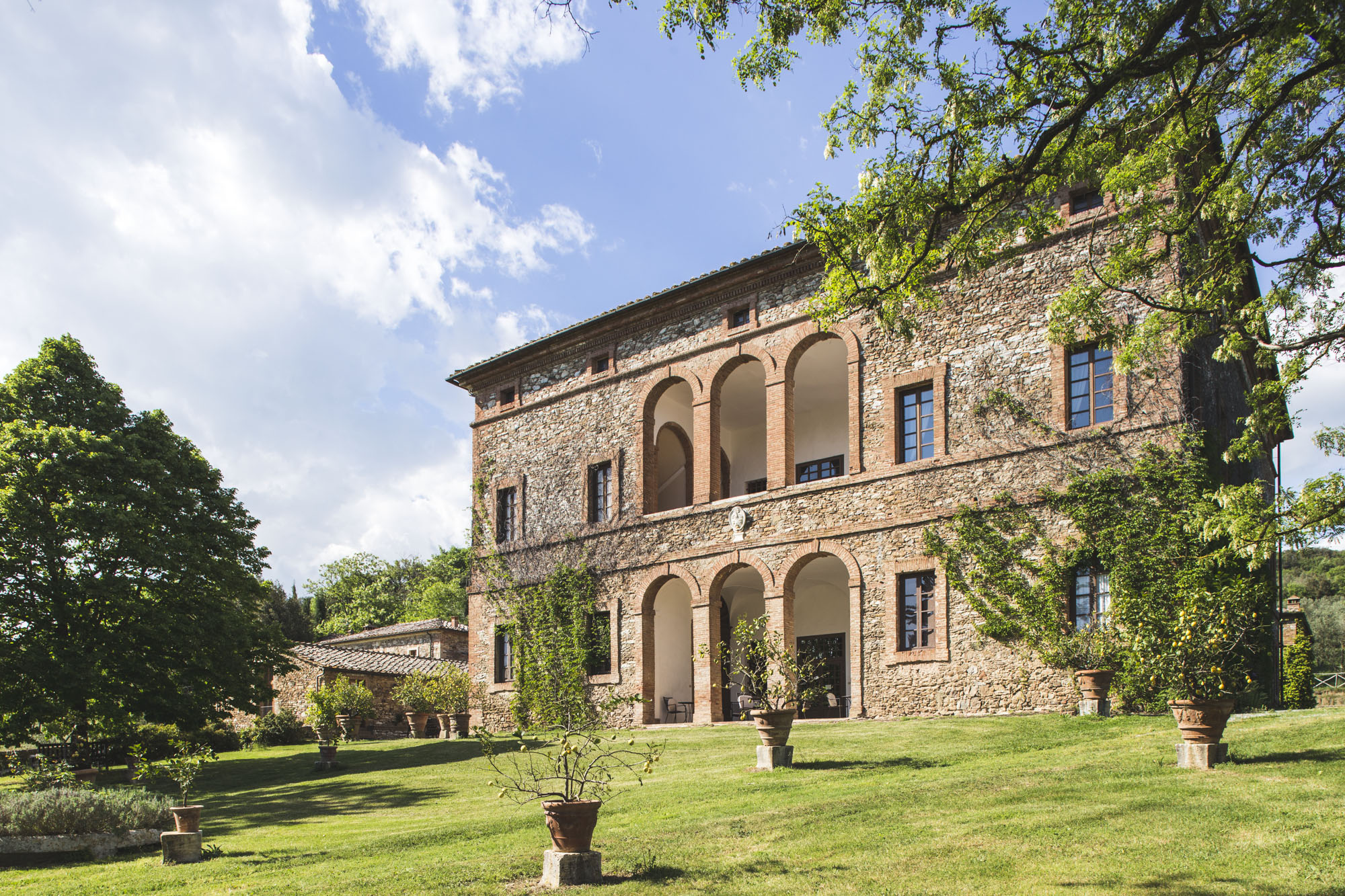 Villa Buoninsegna, located about 25 km from Siena, is an agricultural holding that extends over 320 hectares. The property includes apartments and rooms with traditional décor, period features and antiques. It also has two swimming pools and a large garden.