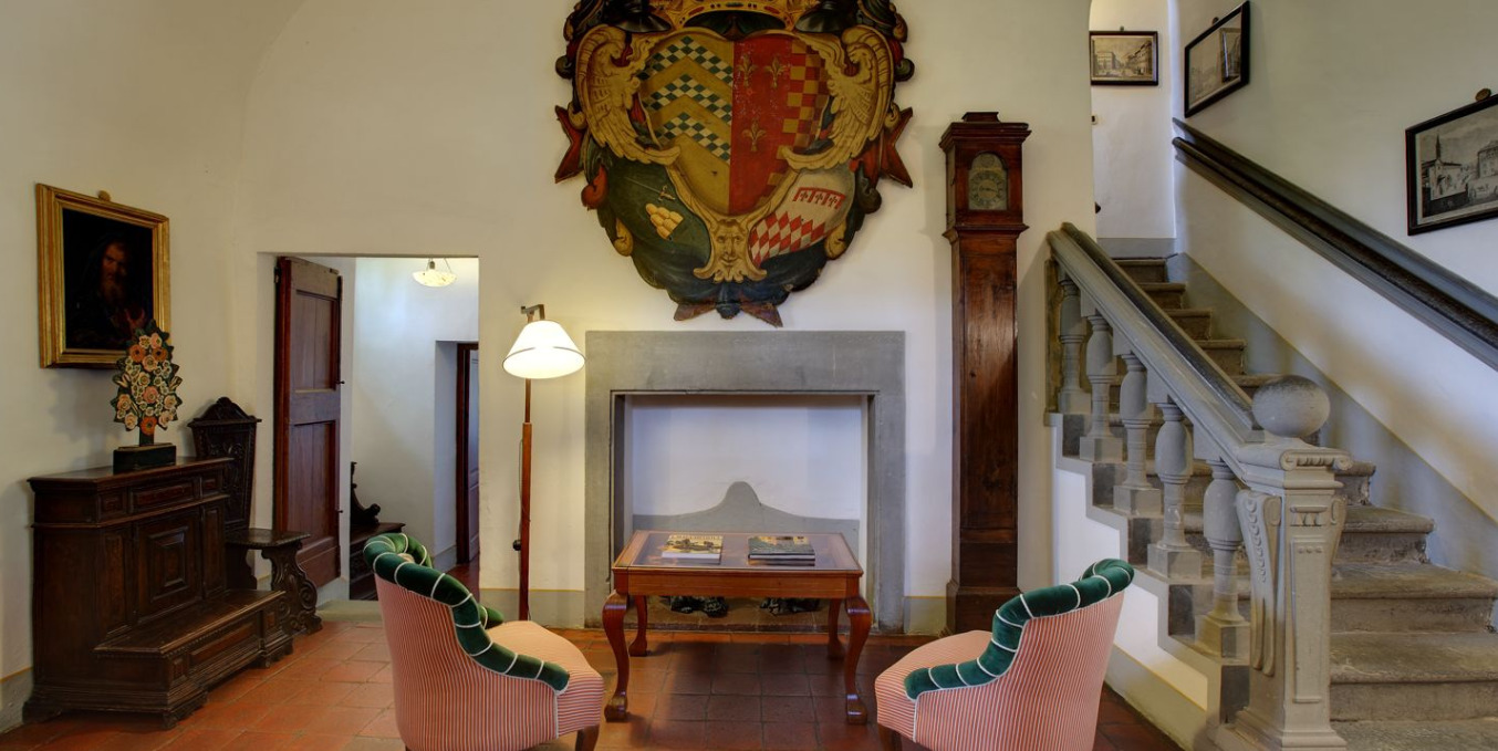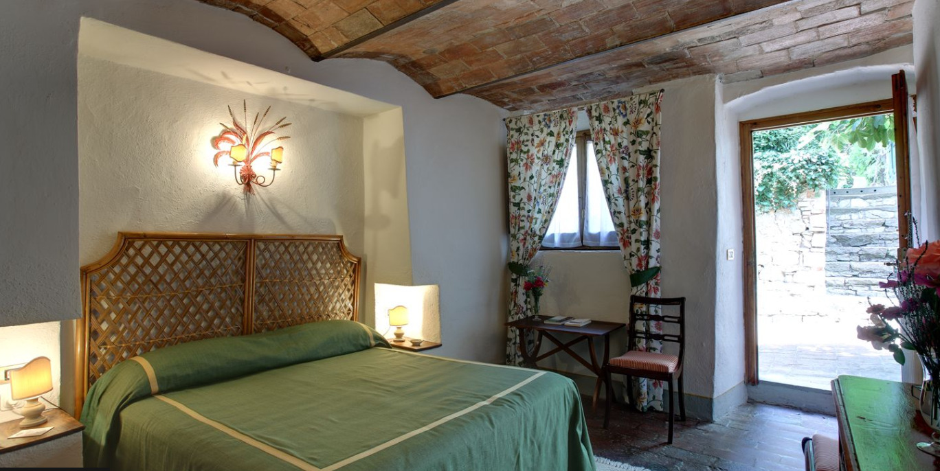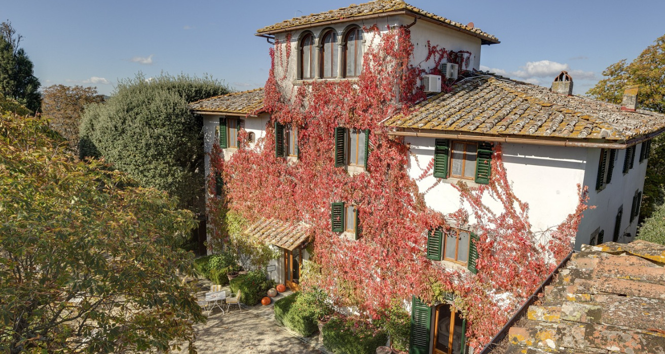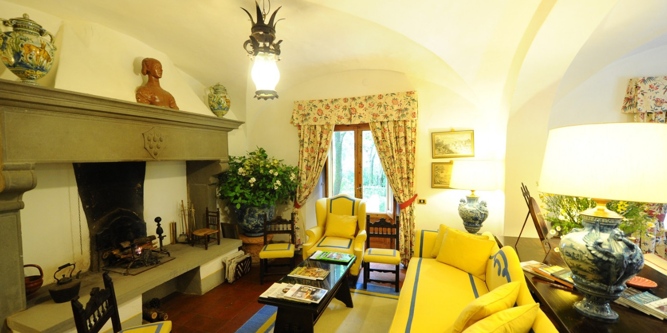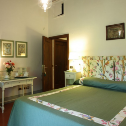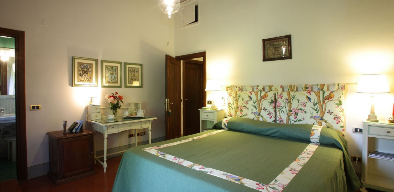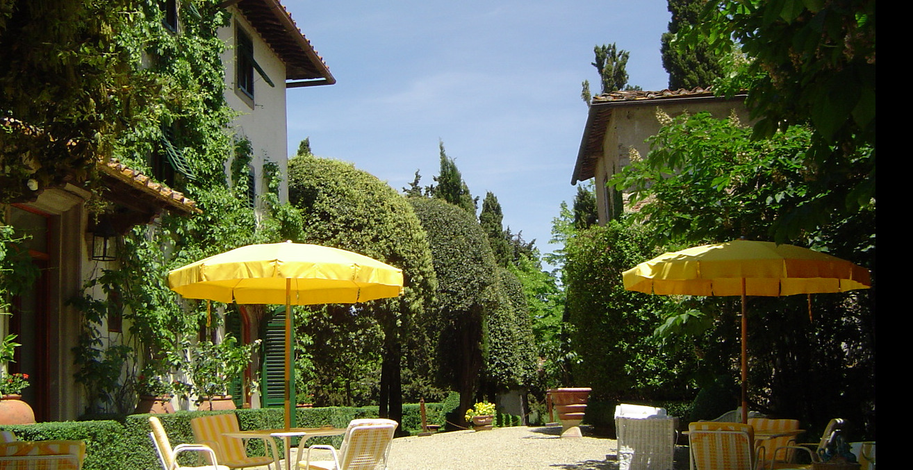 The Villa, owned by the Della Robbia family since the 16th century, has been transformed into a hotel with swimming pool and tennis court. The property features antique-style rooms and gardens with panoramic views.