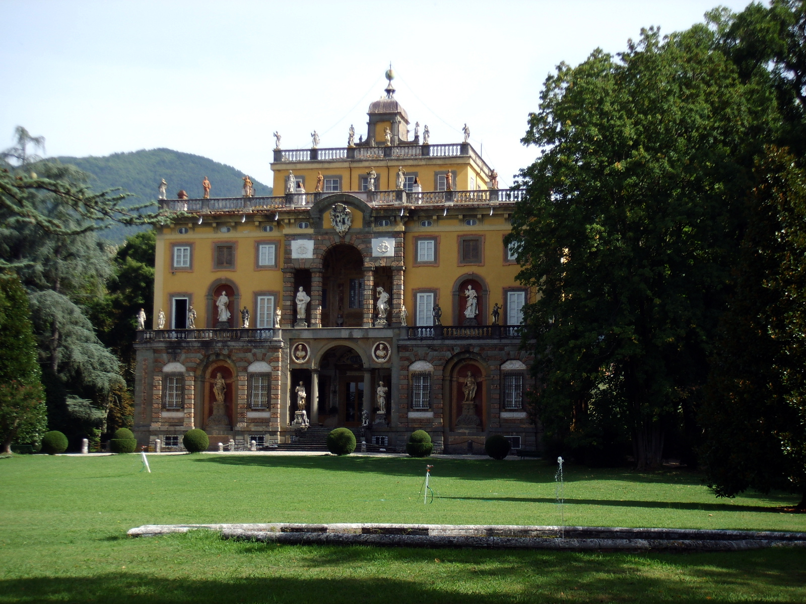 Villa Torrigiani is one of the most luxurious and spectacular villas in the Lucca area and dates back to the second half of the 16th century. The building stands out due to its vivid multi-coloured main façade, while the late-Renaissance façade on the back features a large portico. Inside it, there is a grand elliptical staircase, stuccos and unusual decorations. The park has taken on a romantic aspect since the 19th century, with the inclusion of plant species from various parts of the world, as well as numerous varieties of camellias.