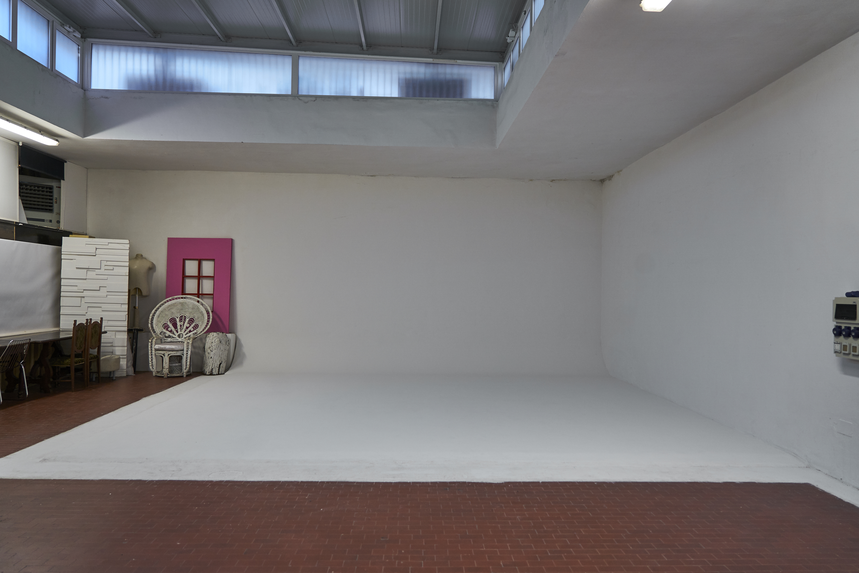 This is a 500 sqm photographic studio in the centre of Florence. Equipped with two rooms used for taking photos, with make-up areas, the space has a limbo/cyclorama area that extends for 5 meters.
