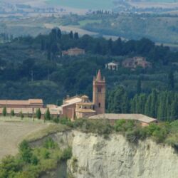 Nel cuore delle Crete Senesi, l’Abbazia di Monte Oliveto Maggiore è un complesso monastico di stile romanico, costruito nel 1319 che ricalca la classica impostazione delle abbazie benedettine: una grande chiesa con un chiostro principale, un’aula capitolare e un refettorio. Il chiostro ospita una delle più importanti testimonianze della pittura rinascimentale, il ciclo di affreschi Storie di San Benedetto di Luca Signorelli e Antonio Bazzi.