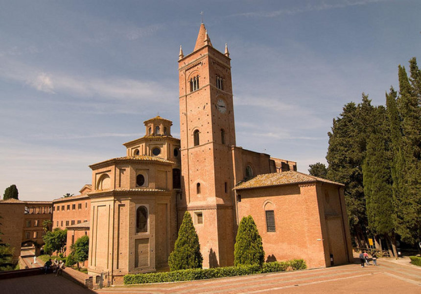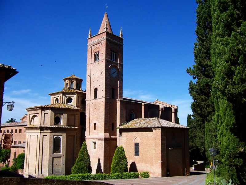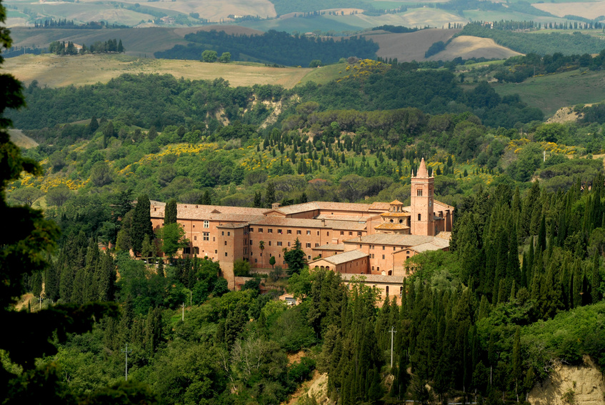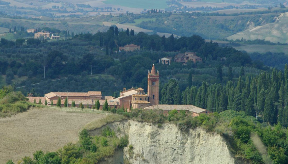 Nel cuore delle Crete Senesi, l’Abbazia di Monte Oliveto Maggiore è un complesso monastico di stile romanico, costruito nel 1319 che ricalca la classica impostazione delle abbazie benedettine: una grande chiesa con un chiostro principale, un’aula capitolare e un refettorio. Il chiostro ospita una delle più importanti testimonianze della pittura rinascimentale, il ciclo di affreschi Storie di San Benedetto di Luca Signorelli e Antonio Bazzi.