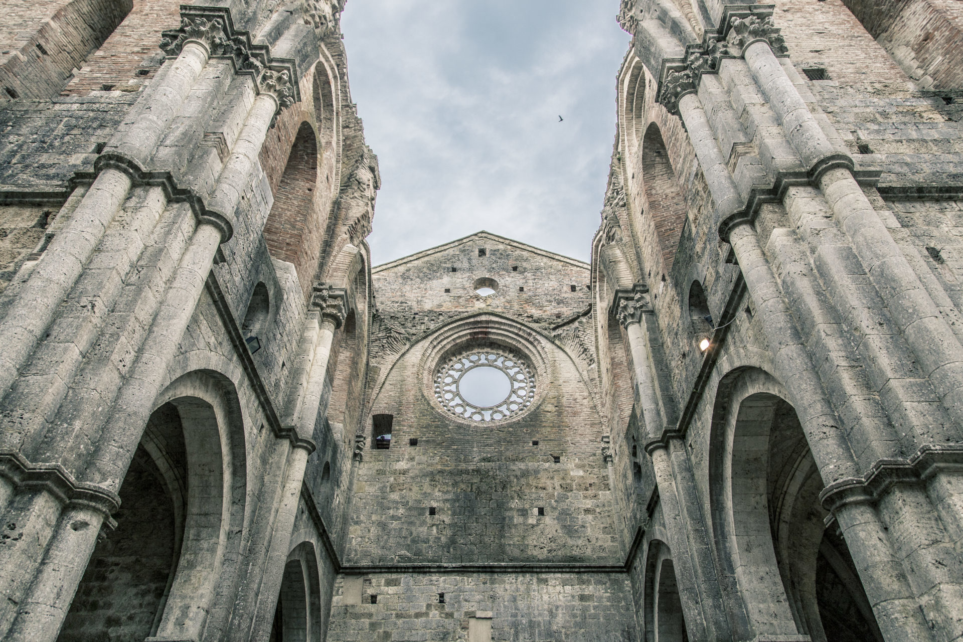 Situata nel tratto di Toscana tra Siena e Massa Marittima, l‘Abbazia di San Galgano è considerata uno dei più prestigiosi esempi di architettura gotico-cistercense italiani. Il sito è costituito dall’eremo (Rotonda di Montesiepi) e dalla grande abbazia (69 metri di lunghezza per 21 di larghezza), unica in Italia per la mancanza del tetto.