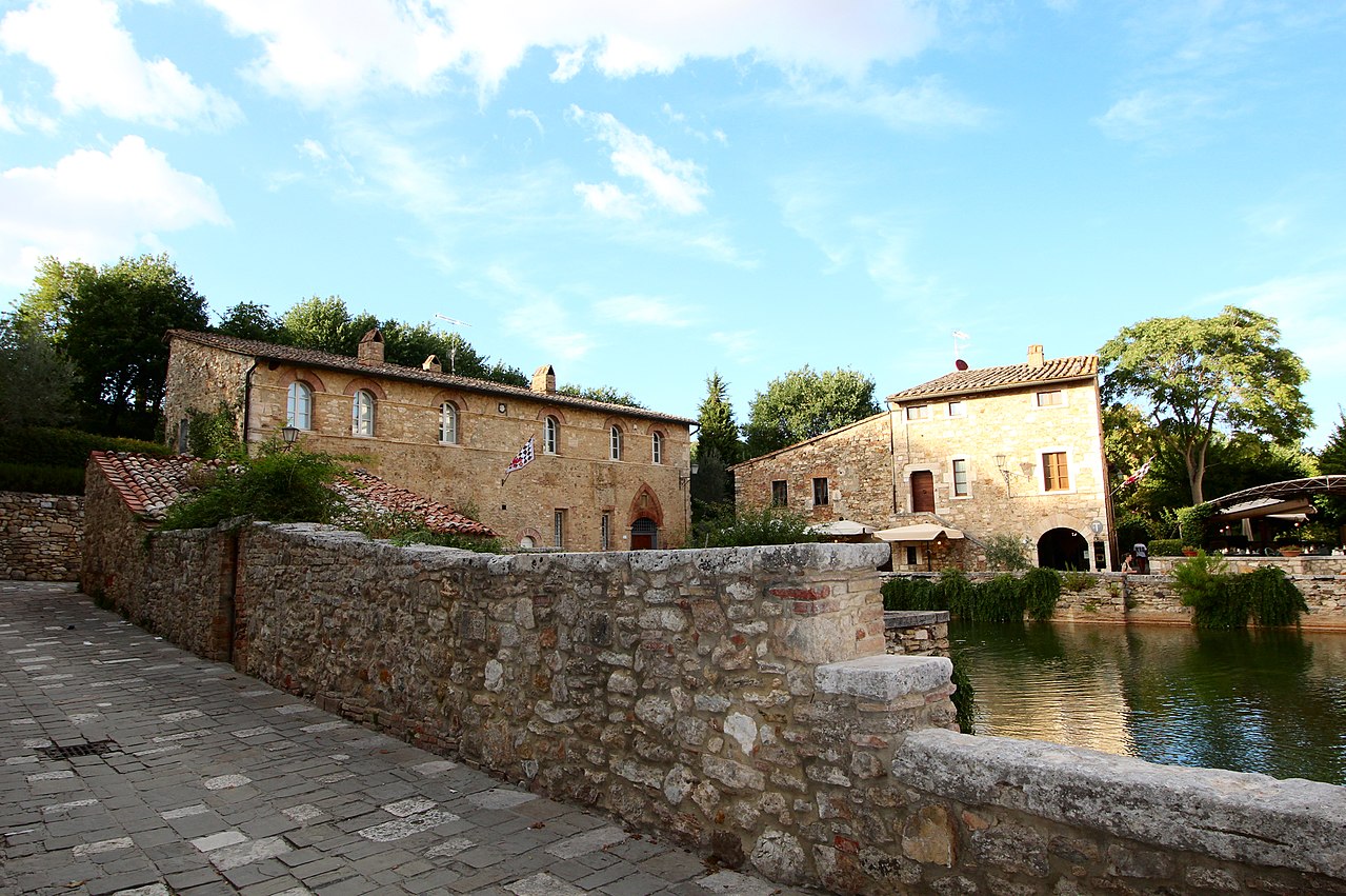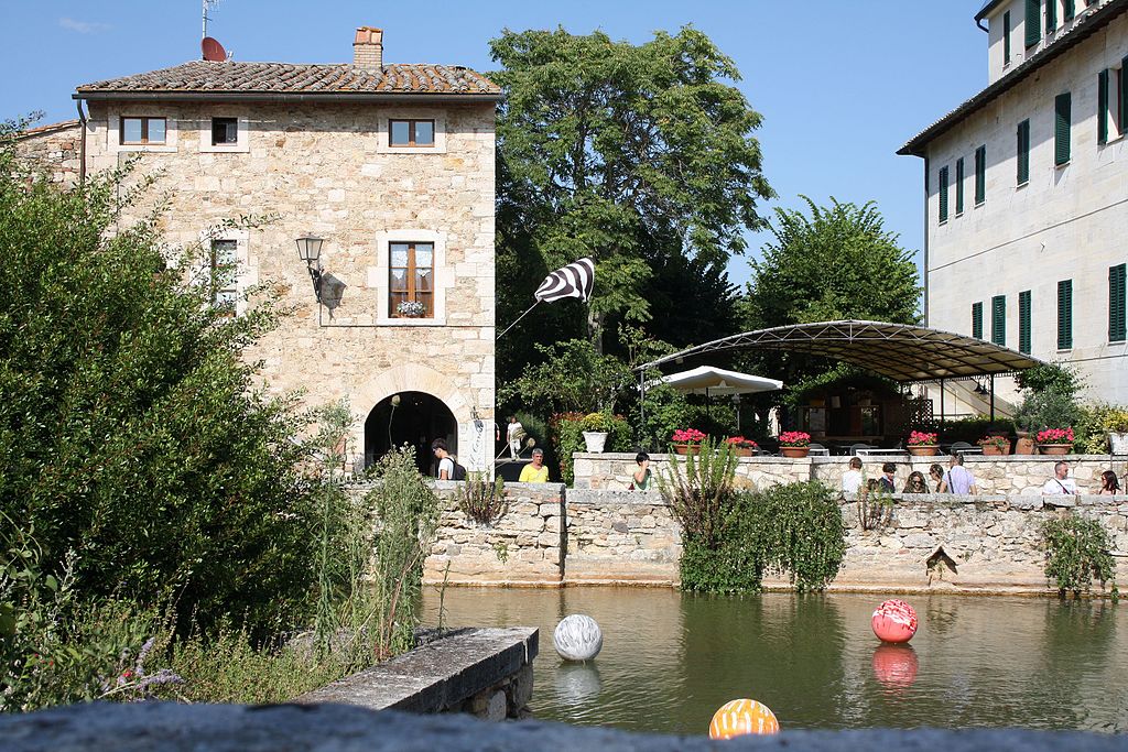 Bagno Vignoni è un piccolo borgo circondato dalle colline della Val d’Orcia, famoso per le acque utilizzate fin dall’epoca romana a scopi termali. Al centro si presenta la Piazza delle sorgenti, una vasca rettangolare che contiene una sorgente di acqua termale calda e fumante.