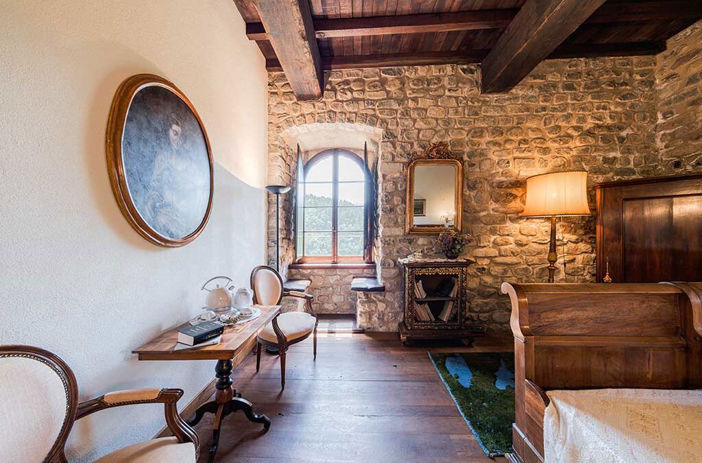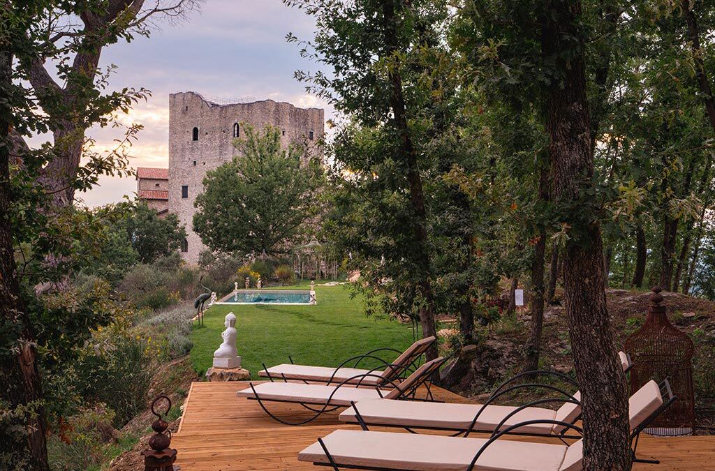Castel dell’Aquila è un’imponente struttura realizzata nel XIII secolo. Circondata da 35 ettari di bosco e disposta su quattro piani, è costituita da un unico corpo di fabbrica che ingloba il mastio di forma quadrilatera.