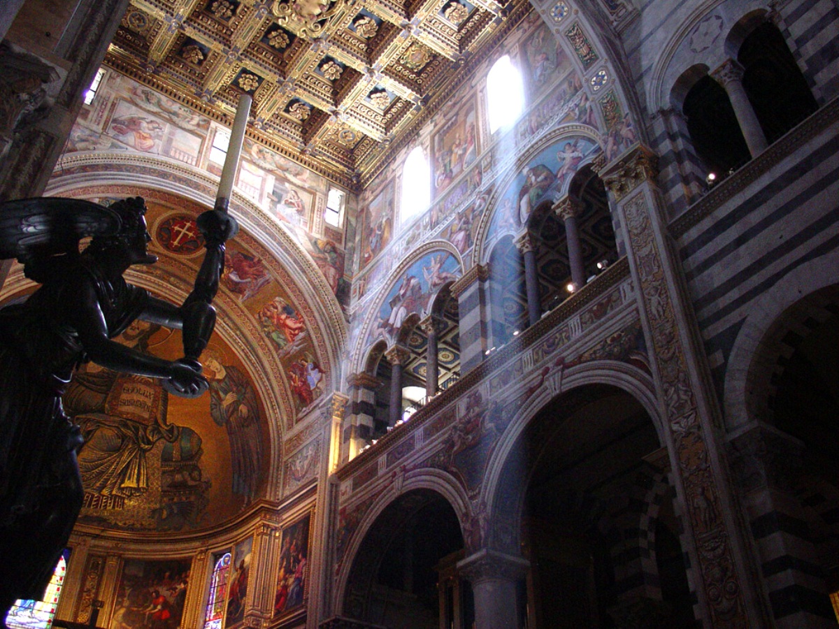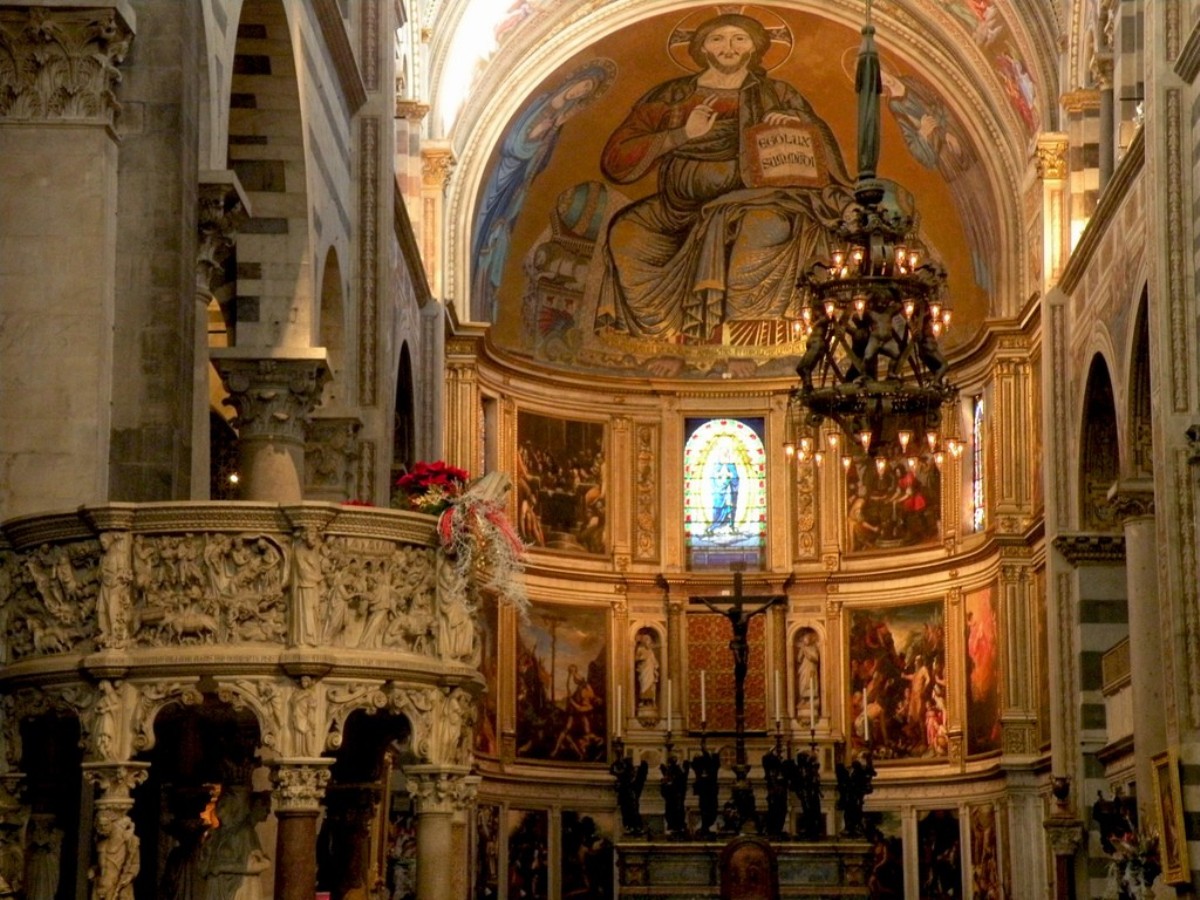 Il Duomo di Santa Maria Assunta al centro di Piazza dei Miracoli è la cattedrale medievale di Pisa. Tra le opere presenti all’interno: il Pulpito di Giovanni Pisano, e i dipinti raffiguranti episodi del Vecchio Testamento, eseguiti da Andrea del Sarto, il Sodoma e Domenico Beccafumi.
