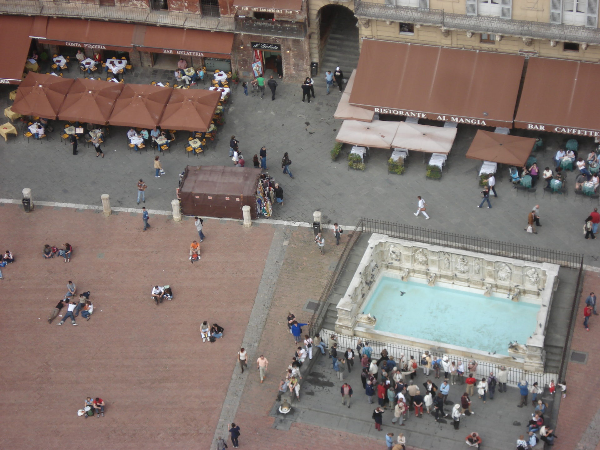Famosa in tutto il mondo per la sua particolare e originale forma emiciclica a conchiglia, inclinata con nove spicchi definiti da fasce bianche, Piazza del Campo, è il fulcro della città dove si svolge anche la corsa del Palio di Siena. Sul “Campo” si affacciano alcuni dei più importanti monumenti senesi: il Palazzo Pubblico, la Torre del Mangia, la Cappella e la fonte Gaia.