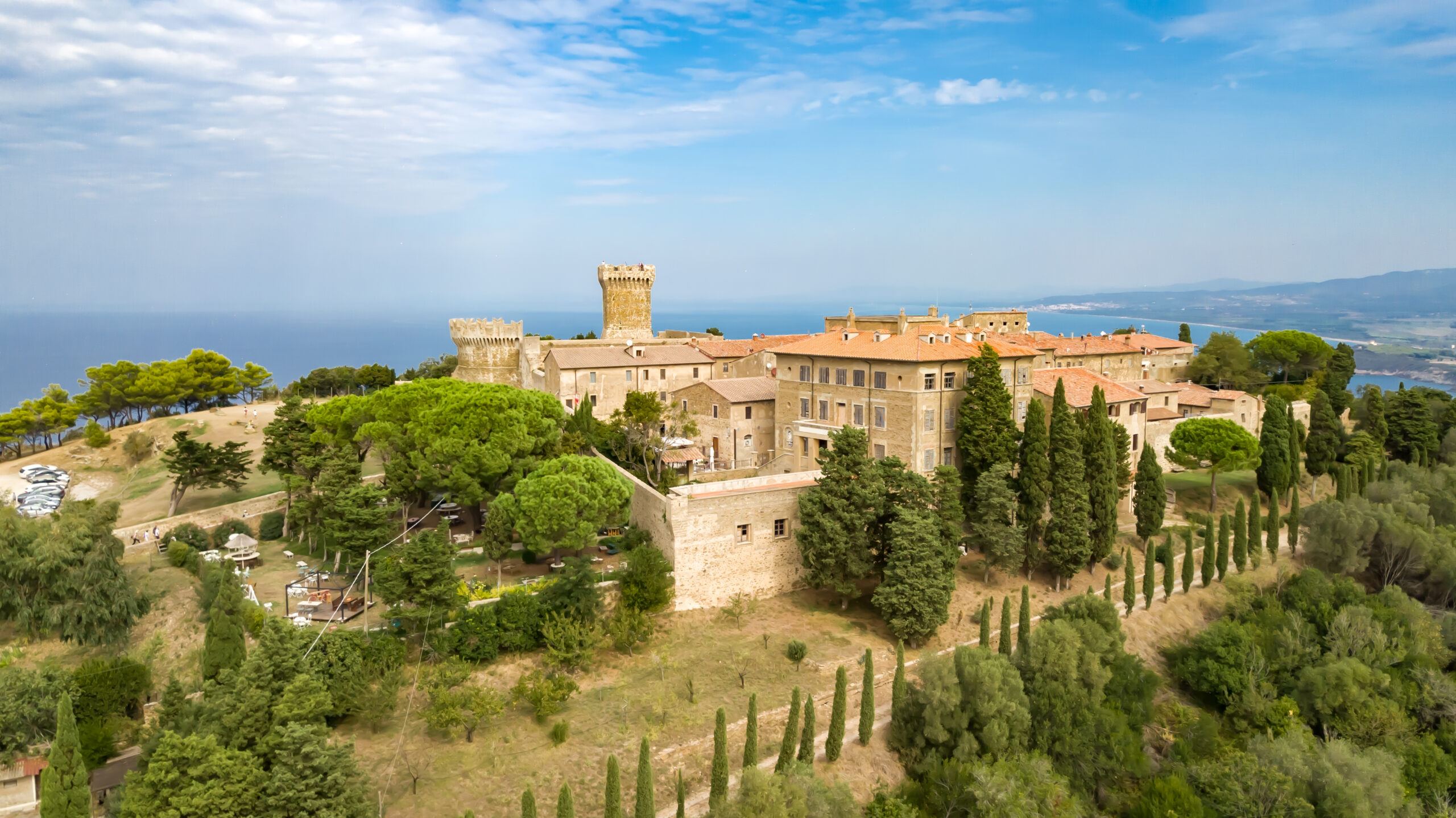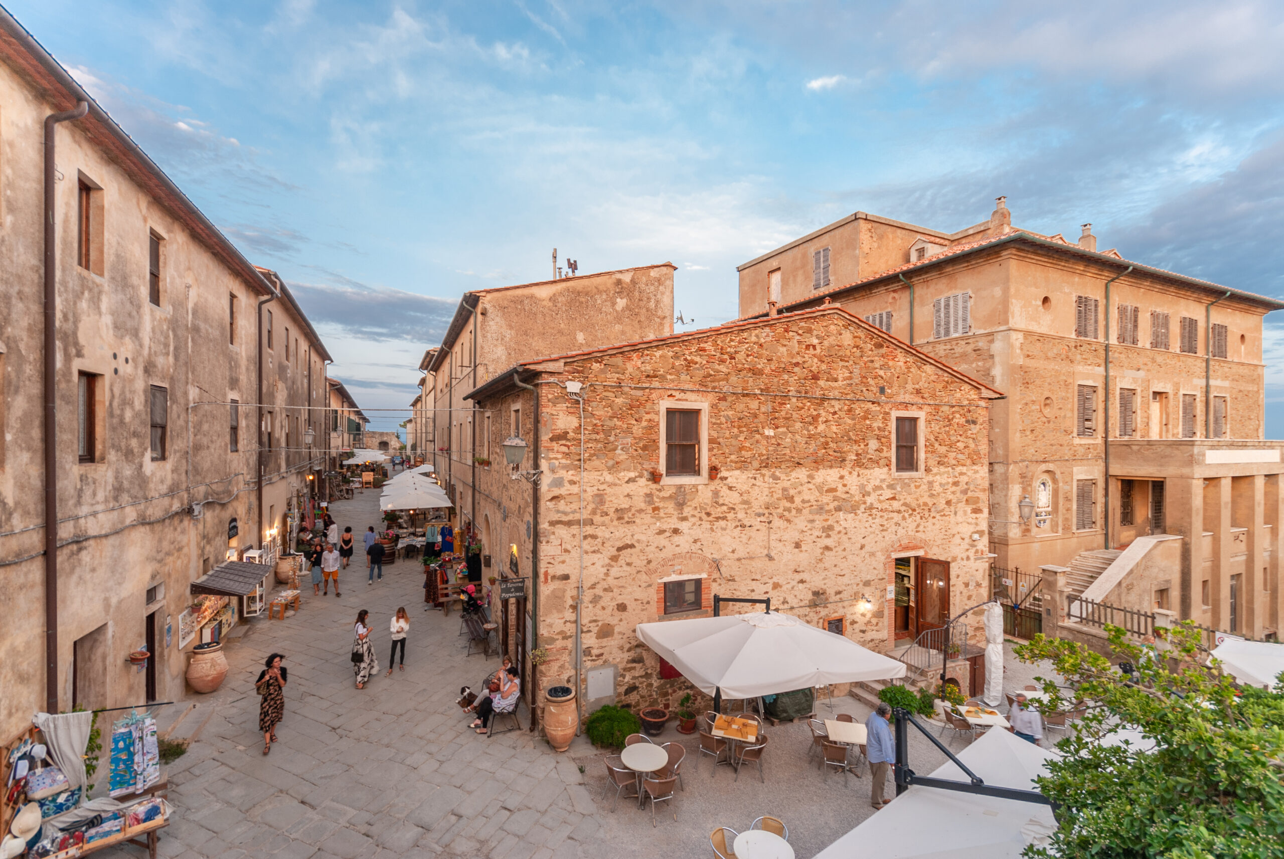 Populonia, antico borgo etrusco situato su una collina circondata dal mare, si trova a 15 km da Piombino. E’ una delle più importanti testimonianze della civilizzazione Etrusca. Le mura medievali e la Rocca, edificata nella prima metà del XV secolo, racchiudono il centro del borgo da cui si ammira uno splendido panorama sul Golfo di Baratti.