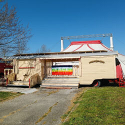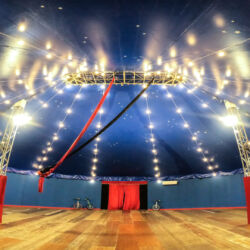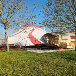 Chapiteau per un grande evento: tensostruttura da 200 mq, altezza 8m, fino a 100 posti, impianto luci LED e moving head con controller DMX, PA system professionale e punti attacco aerei certificati. Sno presenti delle carovane storiche e un London Bus.