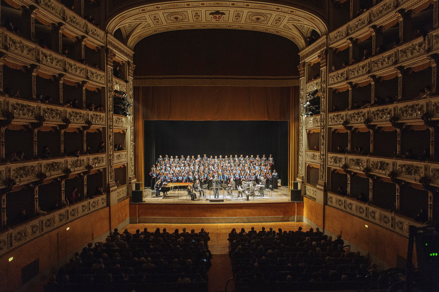Il Teatro Verdi, ubicato nel centro di Pisa, è uno dei più suggestivi esempi d’architettura teatrale ottocentesca, con facciata neoclassica e ampio porticato. Fu costruito tra il 1865 e il 1867 a opera dell’architetto Andrea Scala e possiede uno dei più grandi palcoscenici d’Italia che misura 26 metri di profondità e 32 metri di larghezza. La platea ha un impianto a “ferro di cavallo” e ospita circa 900 posti su tre ordini di palchi e due di galleria. Molto suggestivo è il sottotetto a capriate lignee che sostiene la volta della sala.