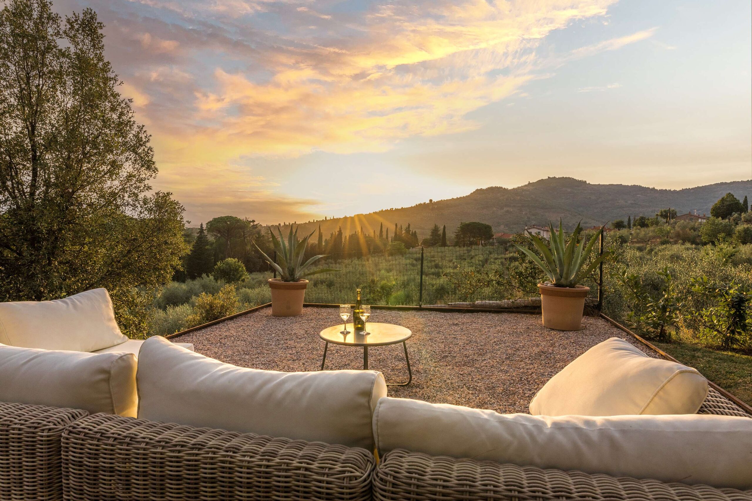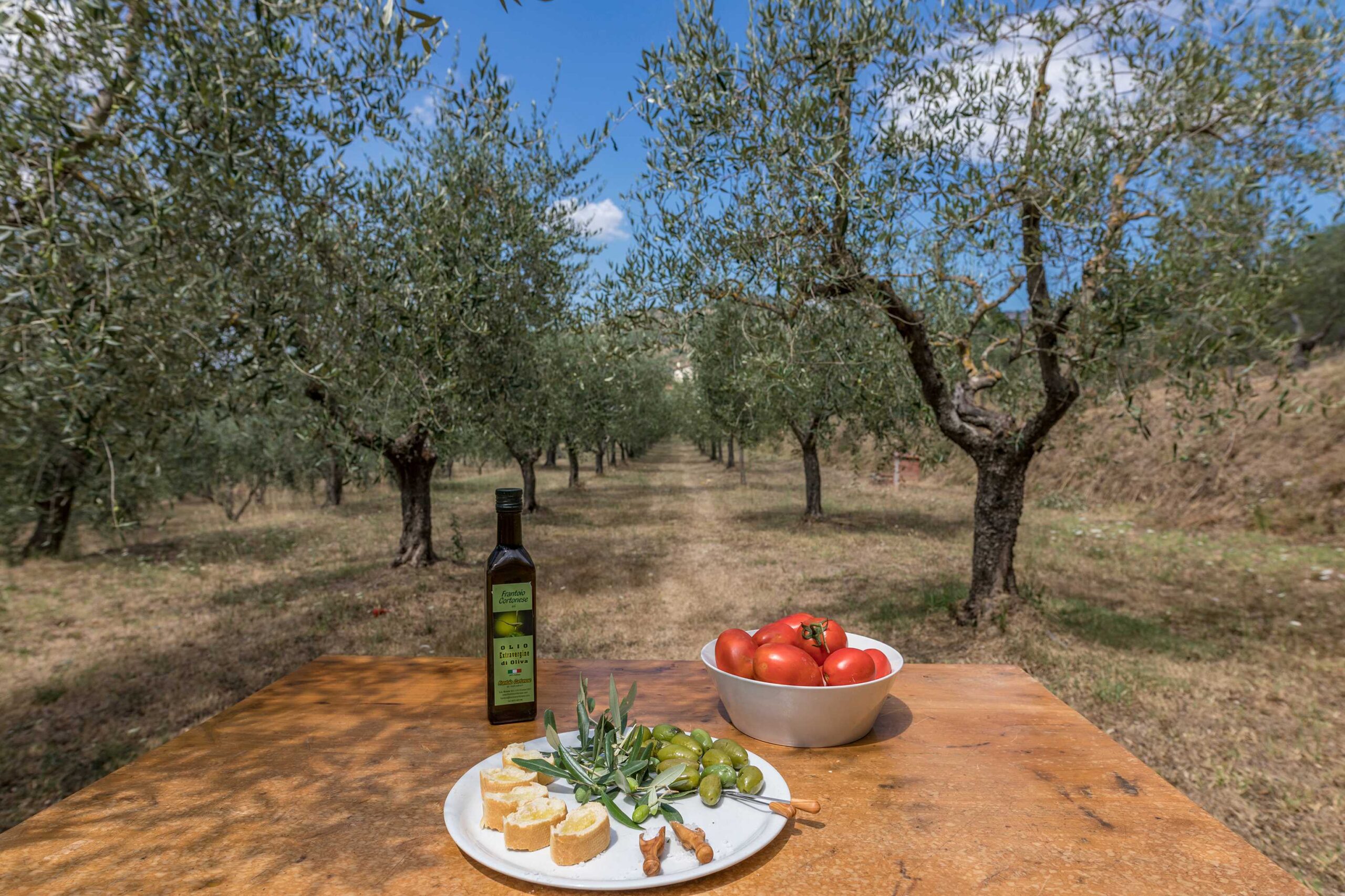 Casa di campagna sulle colline di Cortona. Costruita come fattoria alla fine del XIX secolo, combina elementi rustici con nuove aree ristrutturate. Ha un giardino con alberi da frutto e un oliveto.