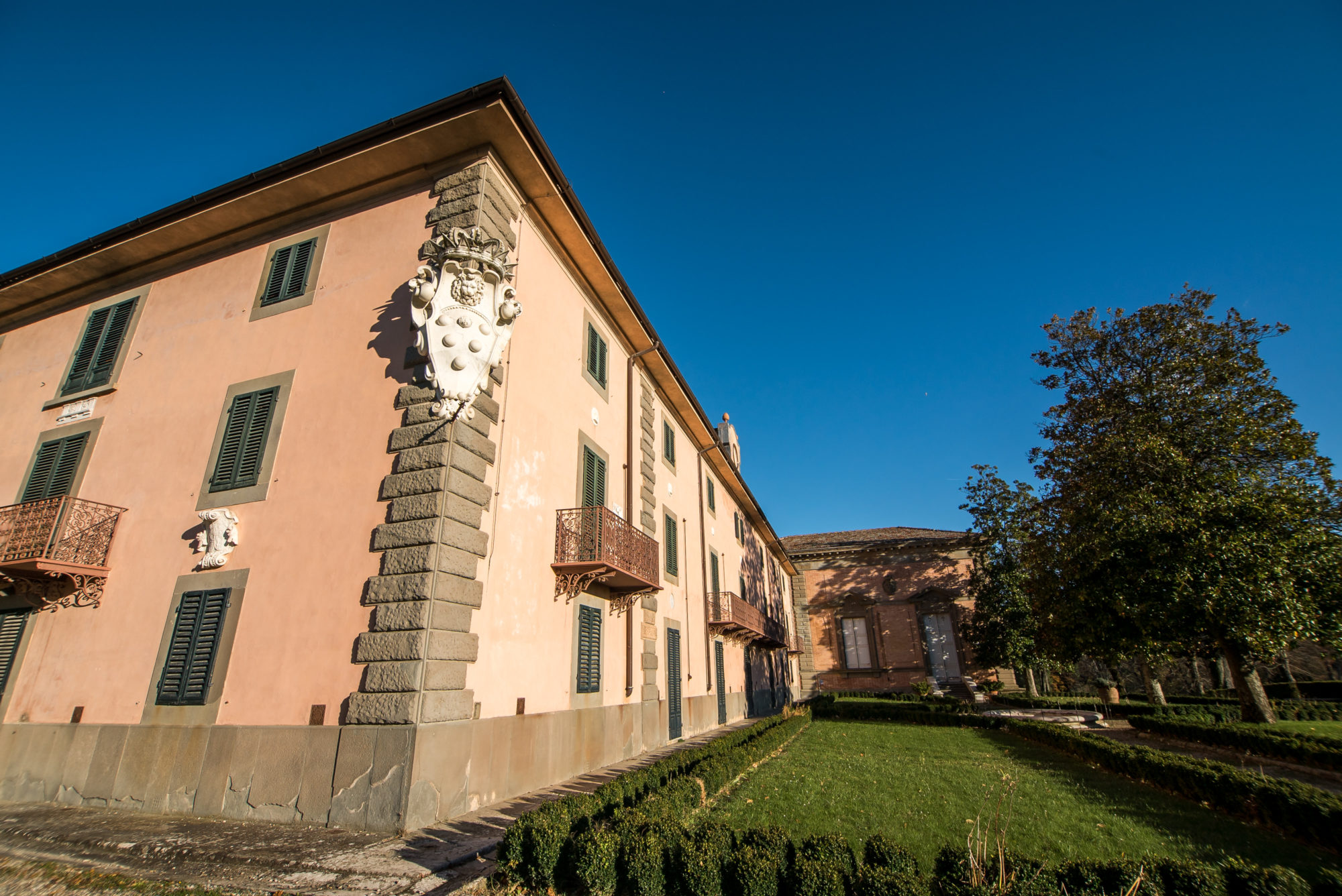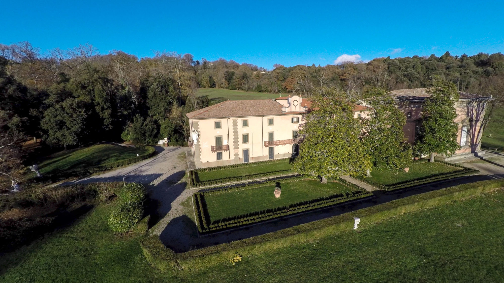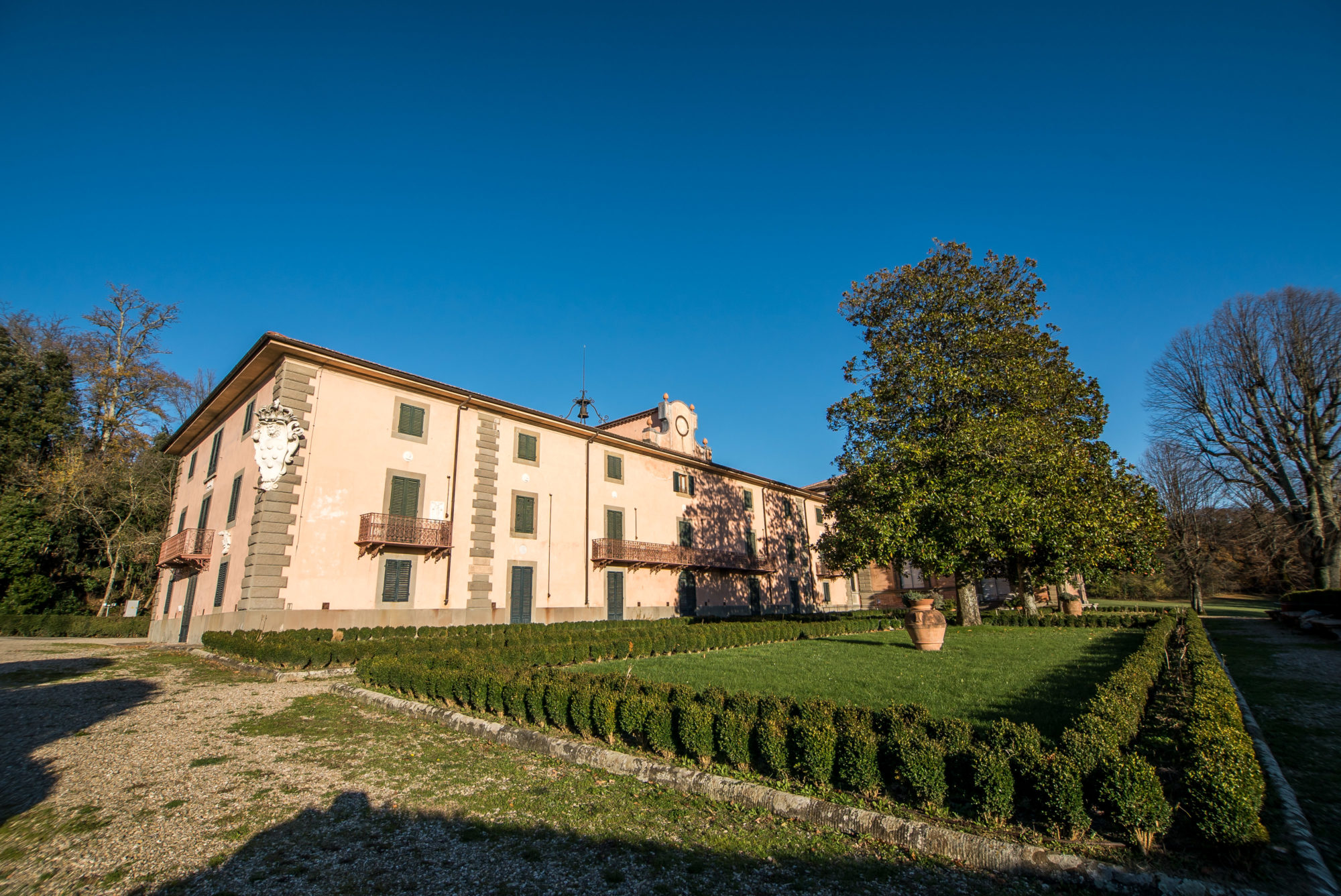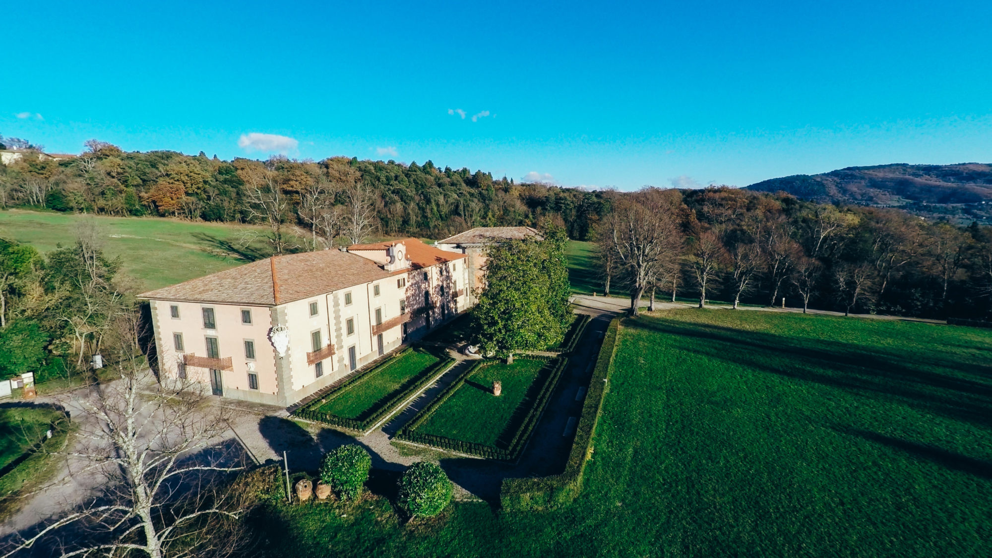 A circa 15 km da Firenze, la Villa Demidoff è un edificio cinquecentesco famoso per l’imponente giardino all’inglese, conosciuto anche come il Parco di Pratolino. Ricco di alberi secolari, tra cui querce, farnie, cedri e ippocastani, il parco conserva opere d’arte come il Gigante dell’Appennino di Giambologna, la Grotta di Cupido e la cappella, progettate da Buontalenti.