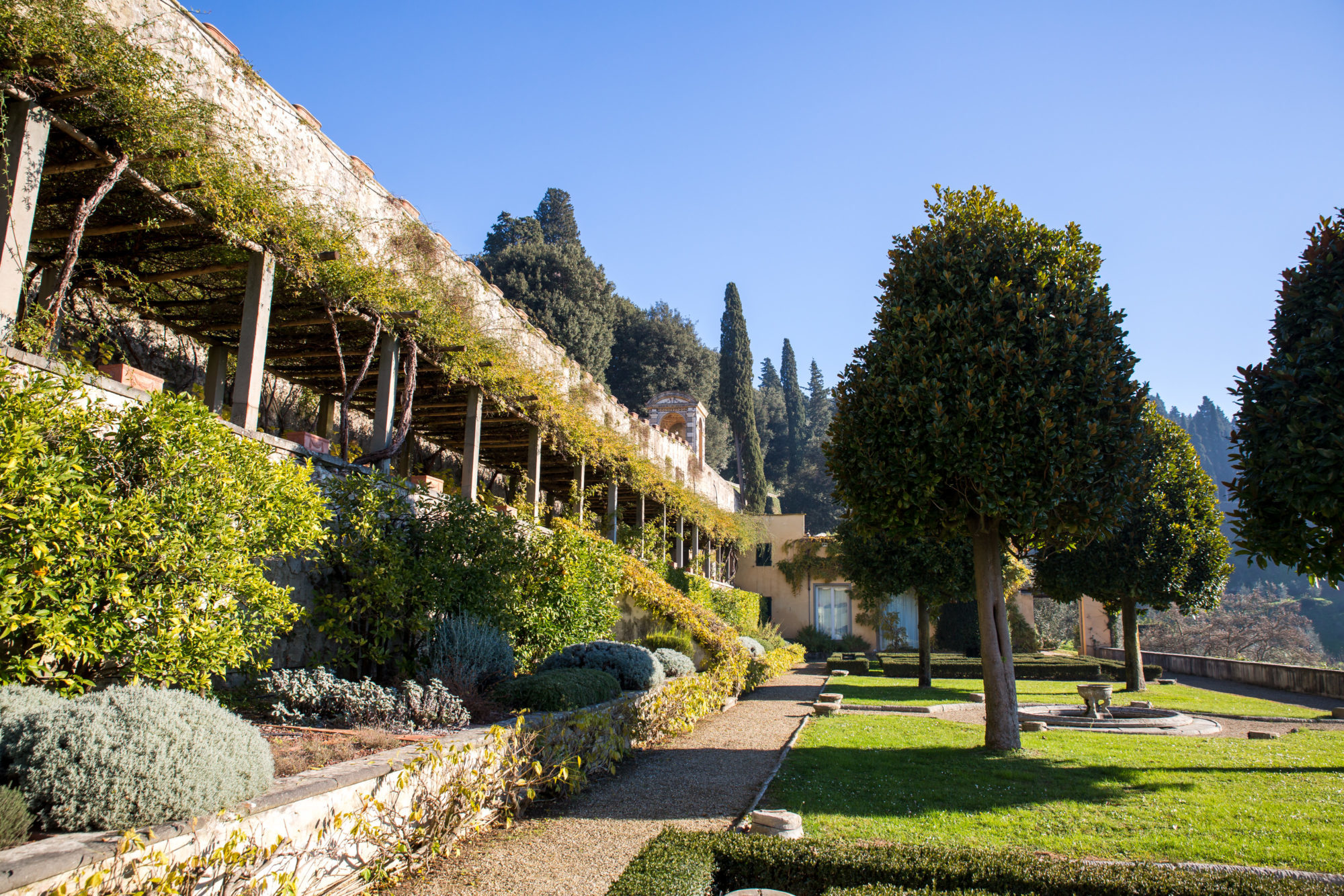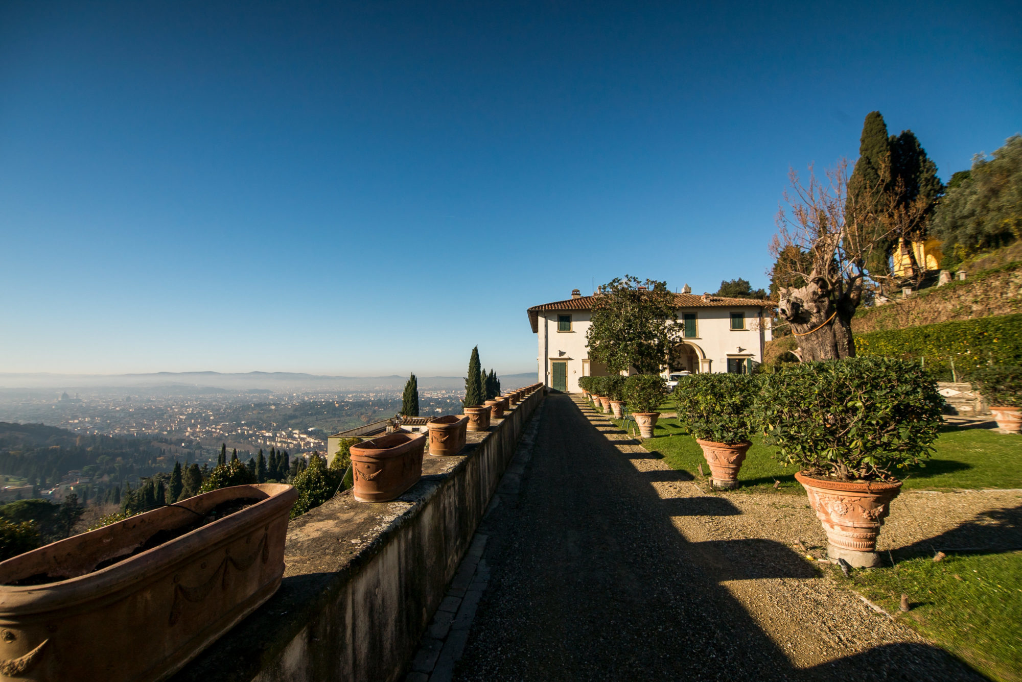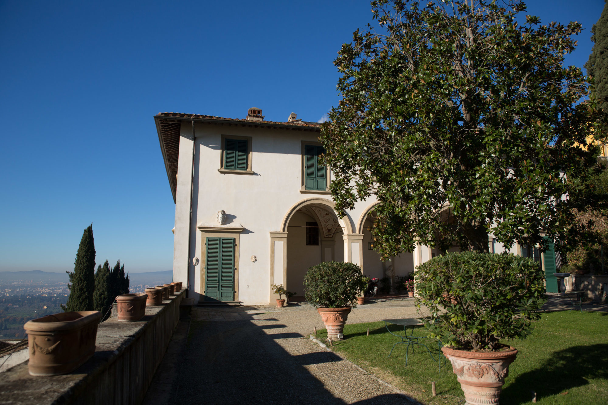 Villa Medici a Fiesole fu costruita dal 1451 al 1457 per volere di Giovanni de’ Medici su progetto di Leon Battista Alberti e di Bernardo Rossellino. E’ un tipico esempio di palazzo quattrocentesco, ornato da finestre riquadrate di pietra serena e da ampie logge aperte sul giardino terrazzato. Oggi di proprietà privata, la Villa è inserita nella Lista dei Beni Culturali e Naturali del Patrimonio Mondiale UNESCO.