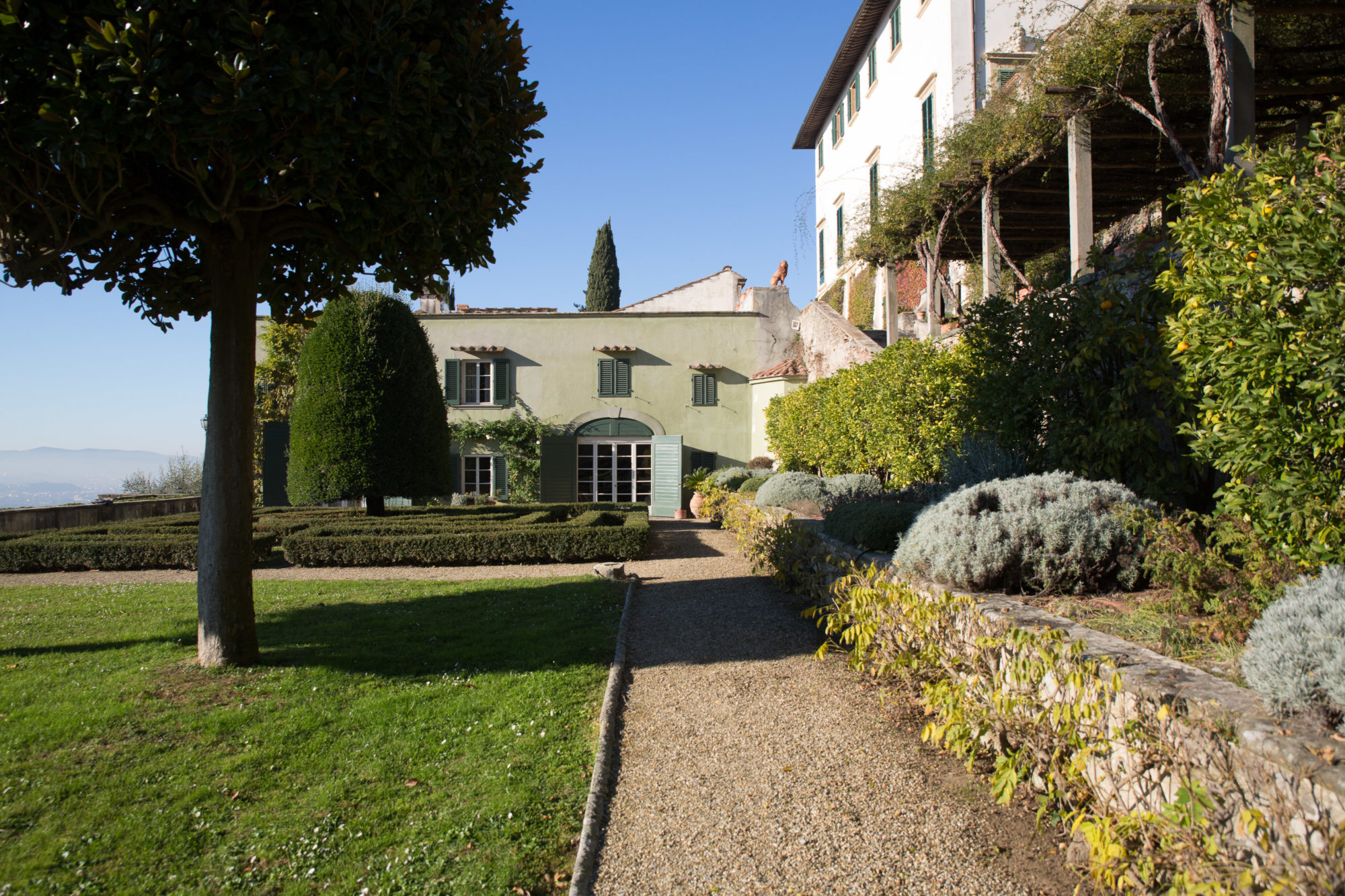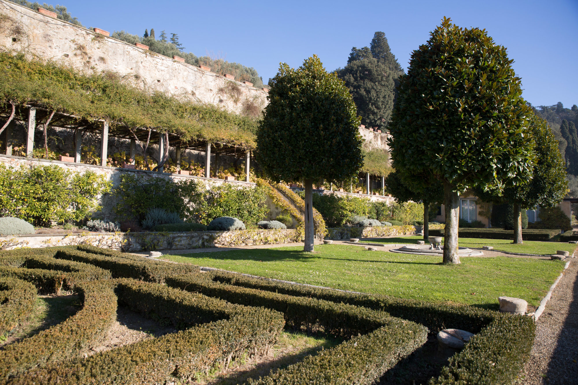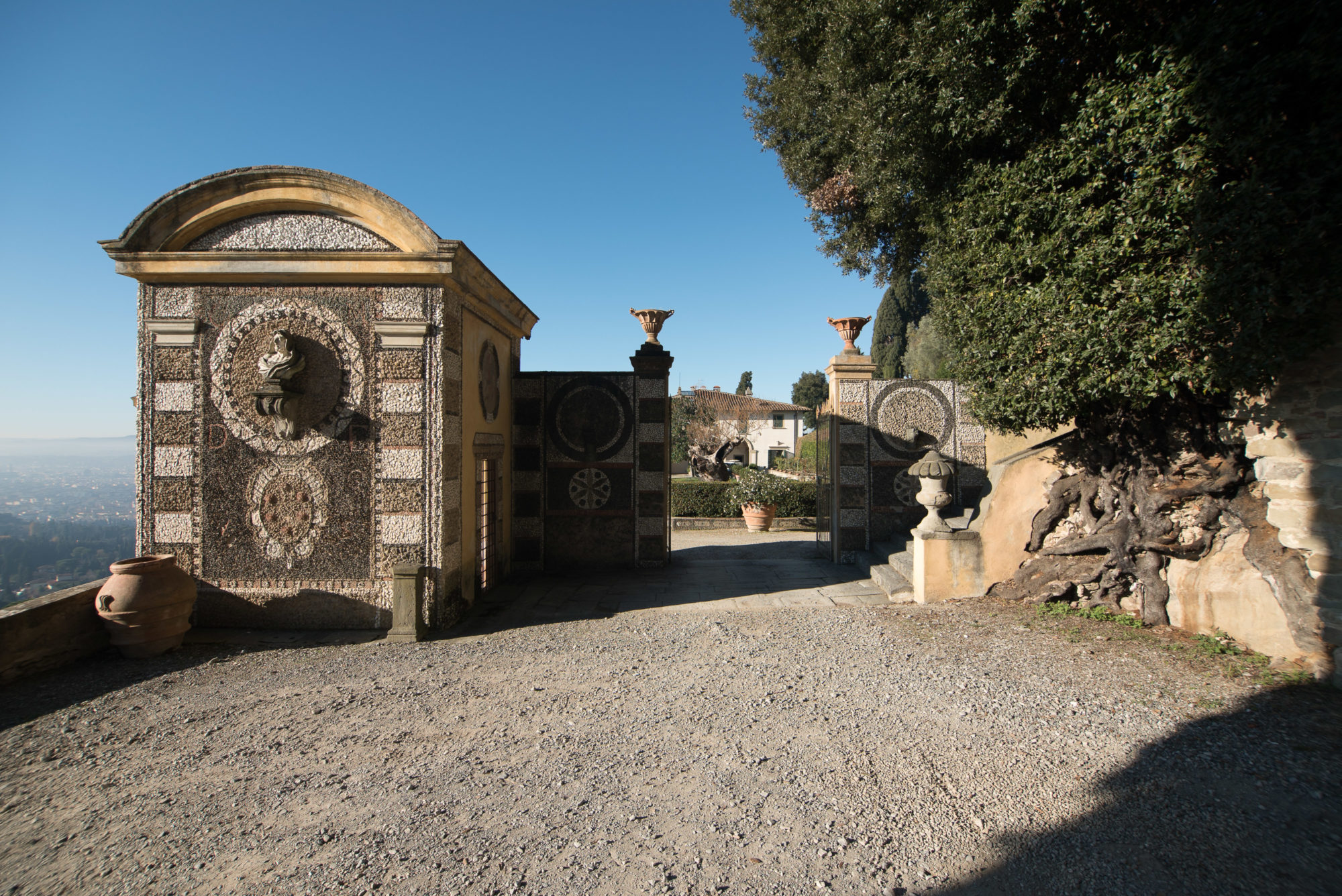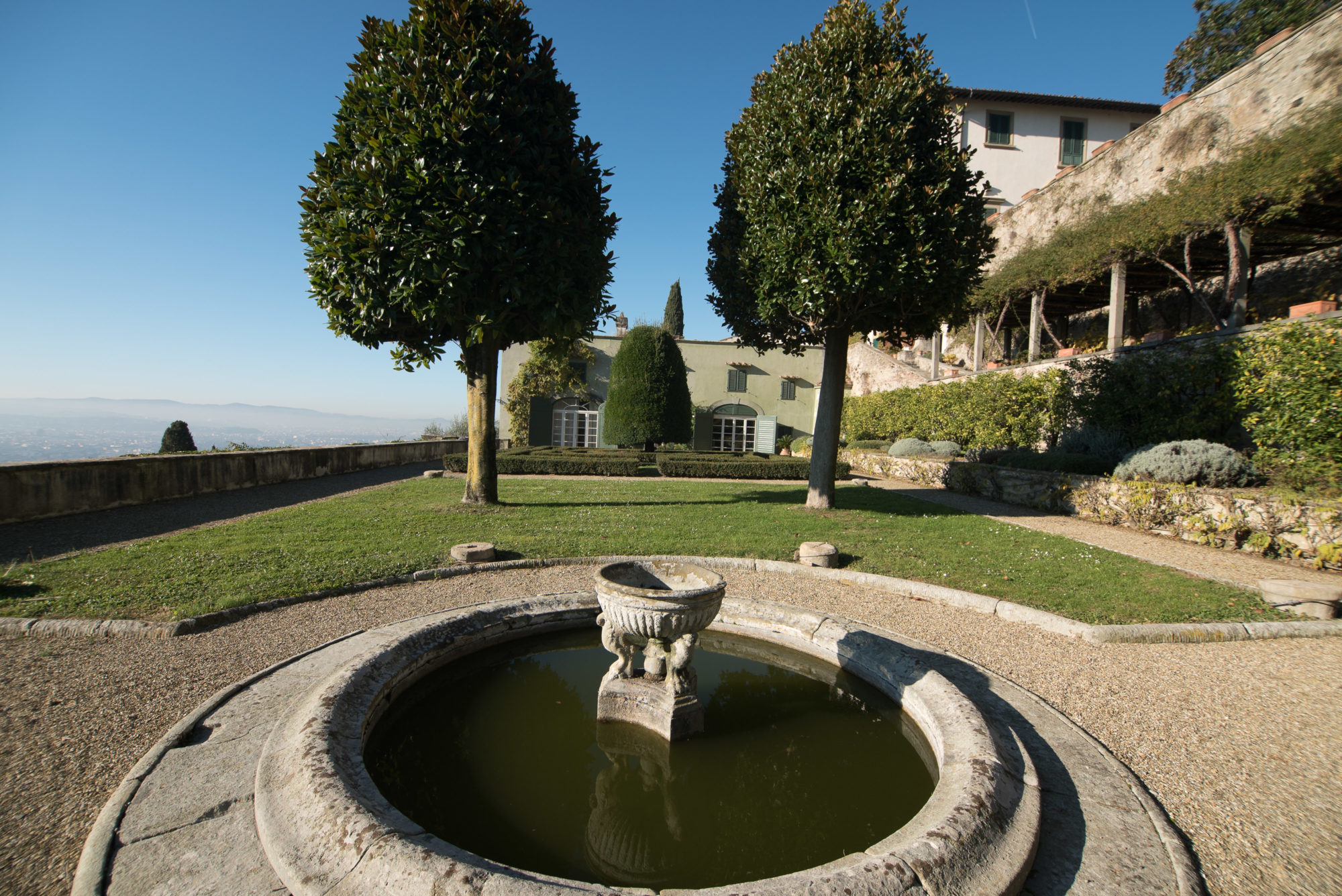 Villa Medici a Fiesole fu costruita dal 1451 al 1457 per volere di Giovanni de’ Medici su progetto di Leon Battista Alberti e di Bernardo Rossellino. E’ un tipico esempio di palazzo quattrocentesco, ornato da finestre riquadrate di pietra serena e da ampie logge aperte sul giardino terrazzato. Oggi di proprietà privata, la Villa è inserita nella Lista dei Beni Culturali e Naturali del Patrimonio Mondiale UNESCO.